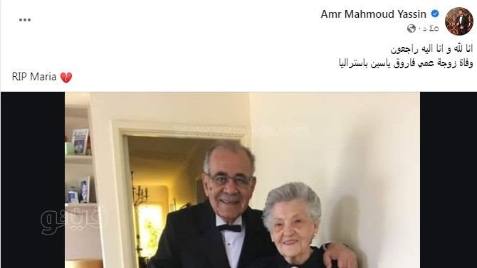 وكتب عمرو محمود ياسين على صفحته الشخصية فيسبوك: "إنا لله وإنا إليه راجعون وفاة زوجة عمي فاروق ياسين بأستراليا".