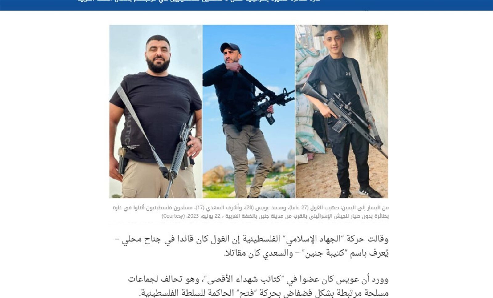 وبالفعل أعلنت إسرائيل آنذاك أنها قتلت ثلاثة فلسطينيين قالت إنهم من "خلية إرهابية" في ضربة بطائرة مسيرة بالقرب من مدينة جنين في شمال الضفة الغربية.