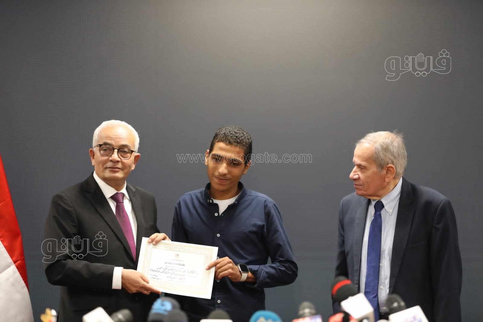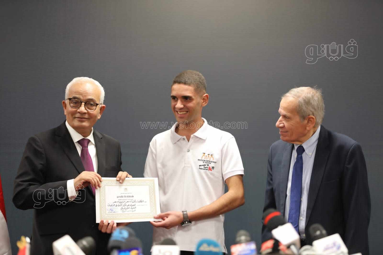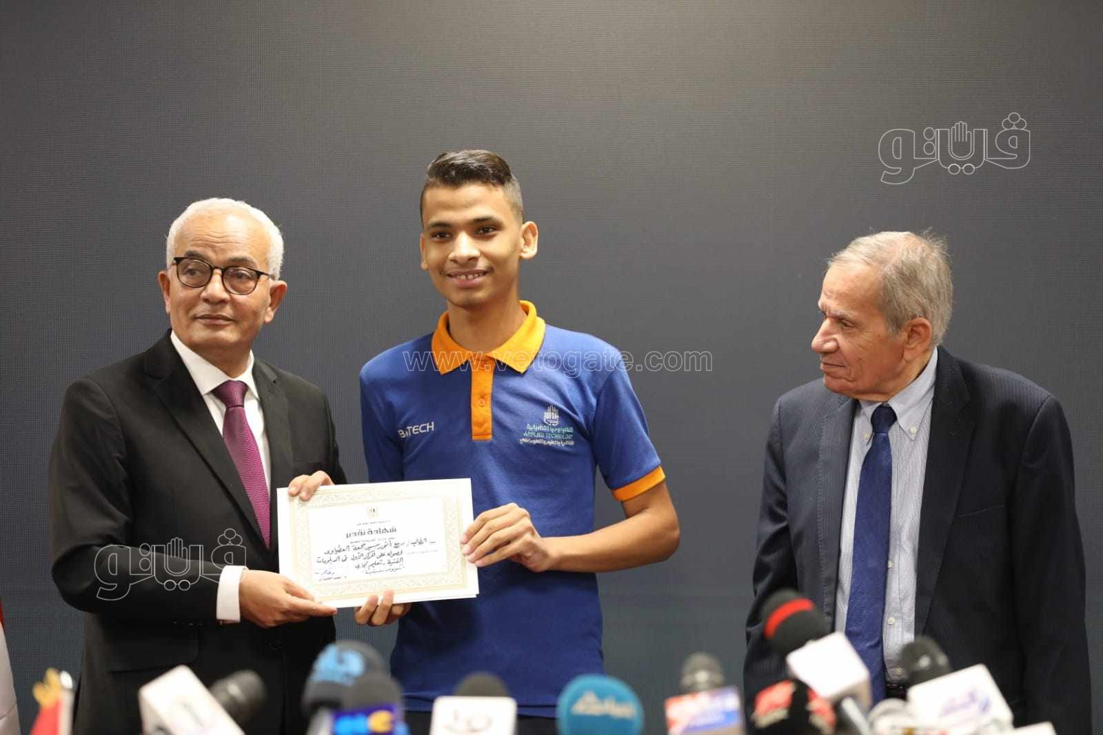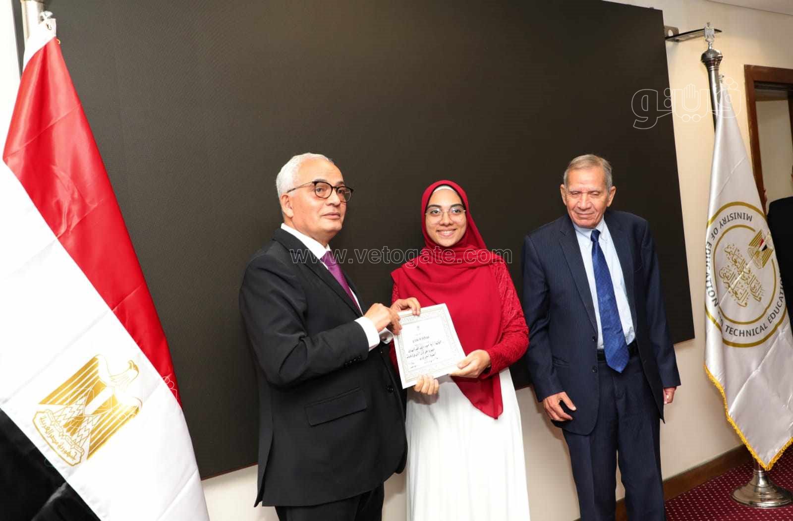 كرم الدكتور رضا حجازى وزير التربية والتعليم والتعليم الفنى والدكتور محمد مجاهد نائب الوزير لشئون التعليم الفنى أوائل الدبلومات الفنية 2023، حيث تم منحهم شهادات تقدير.
