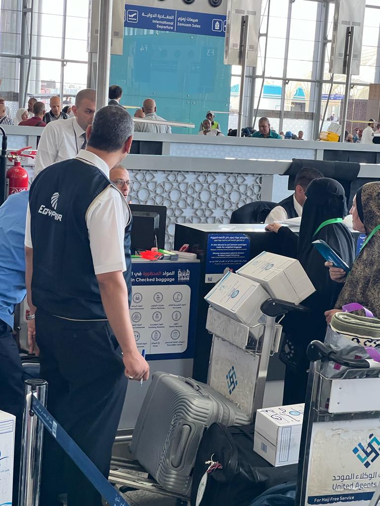1- الحجاج الذين يحملون تذكرة مصر للطيران وتتكون رحلة عودتهم من MS ويليها ثلاثة أرقام، يكون إقلاع الرحلة من مطار الملك عبد العزيز آل سعود الدولي الصالة الشمالية.