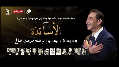 وكانت دار الأوبرا المصرية برئاسة الدكتور خالد داغر عقدت مؤتمرًا صحفيًا مؤخرا للإعلان عن تفاصيل المشروع الفنى الجديد الذى يحمل اسم "الأساتذة"، ويقام بالتعاون مع النجم مدحت صالح.