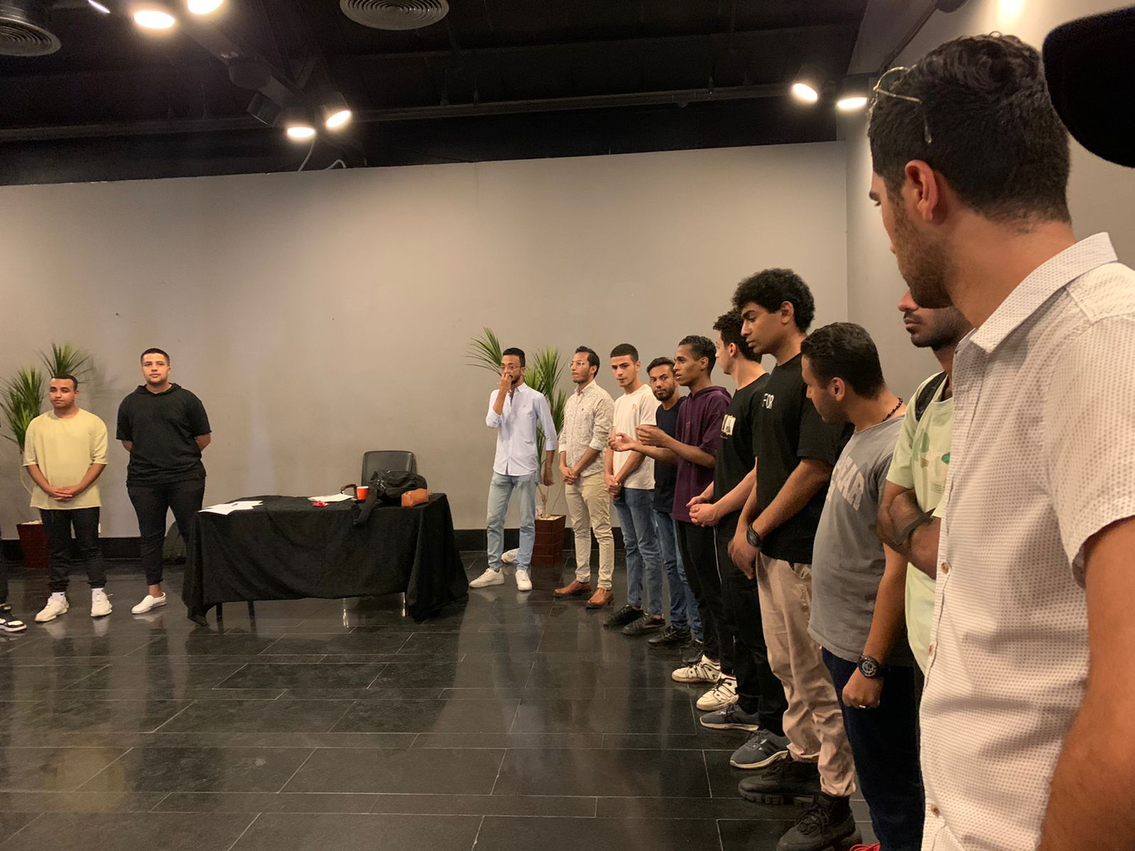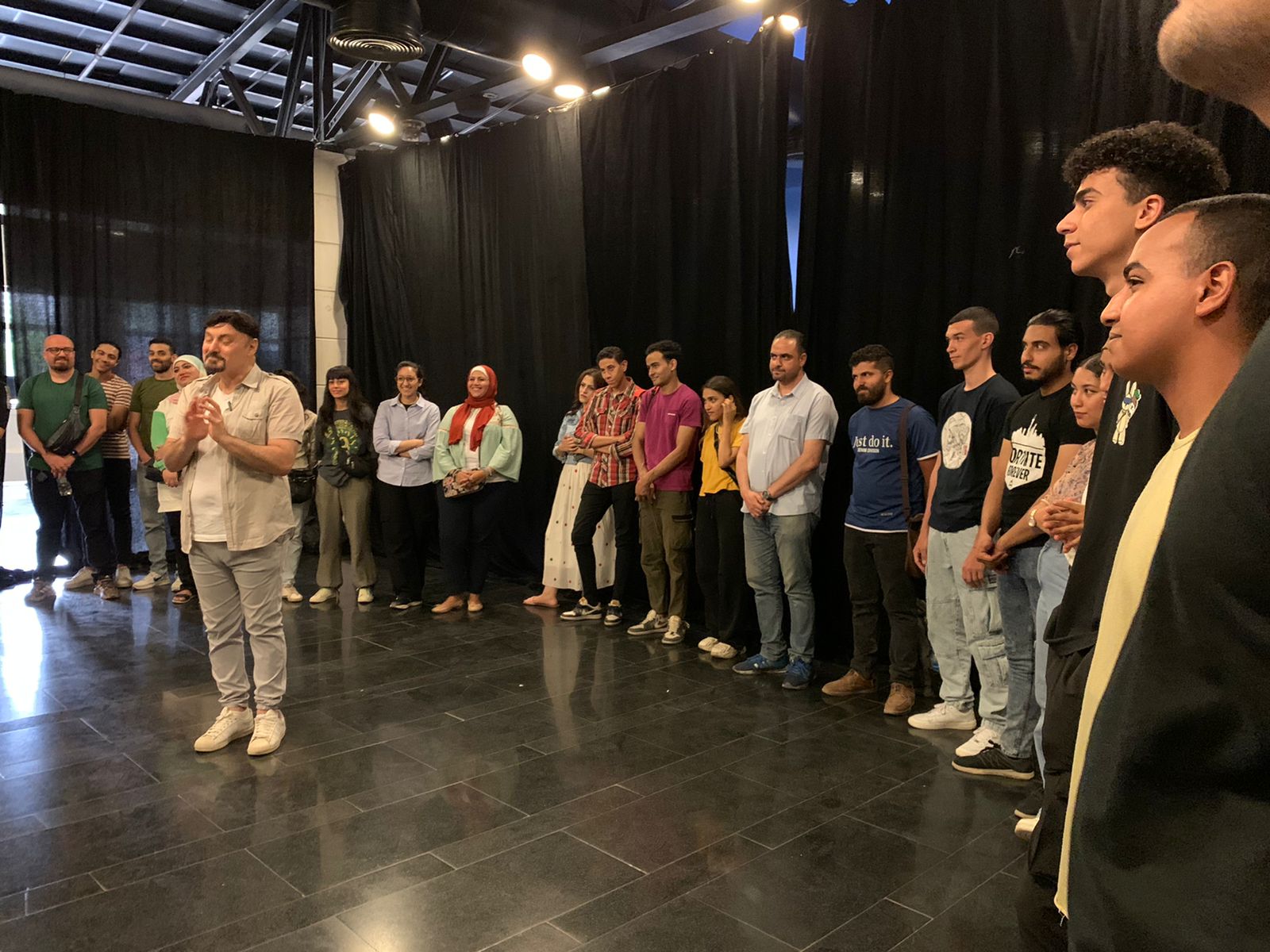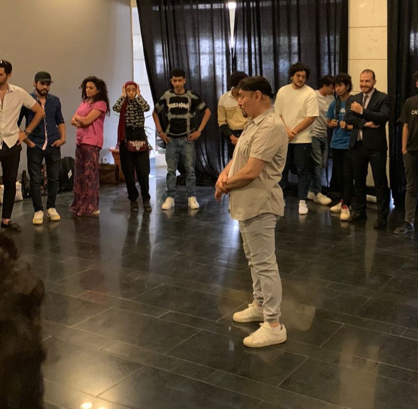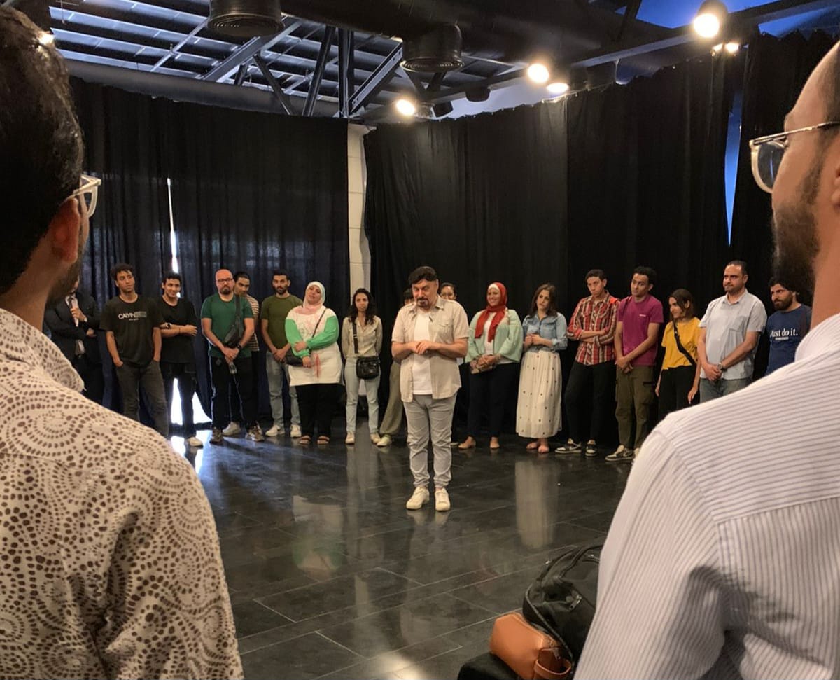 وكذلك اختبر الفنان خالد عبد السلام الراغبين في الالتحاق بورشة الإلقاء.