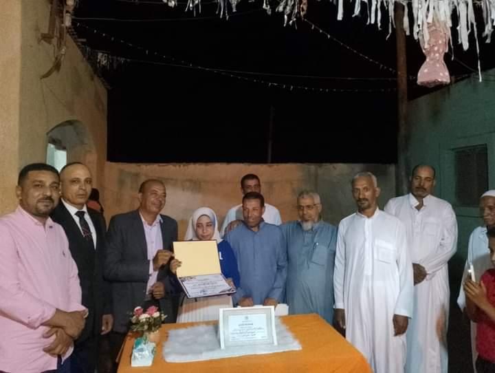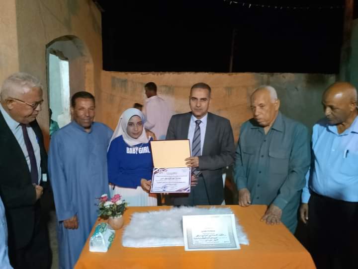 قدم المهندس مجدى الطماوي رئيس مركز ومدينة الداخلة بالوادي الجديد التهنئة للطالبة هدى أشرف صفى الدين من مدرسة موط الثانوية الزراعية بمنزلها بقرية الهنداو، لحصولها على المركز الأول مكرر على مستوى الجمهورية بشهادة الدبلومات الفنية، يرافقه الدكتور محمد خليل رئيس مجلس الامناء بالمحافظة وأحمد محمود حسنين مدير عام الإدارة التعليمية بالداخلة وصابر مبارز نائب ثان رئيس مركز الداخلة وأحمد إبراهيم رئيس الوحدة المحلية لقرى الهنداو ولفيف من القيادات التعليمية بالادارة التعليمية بالداخلة وعدد من أهالي القرية.