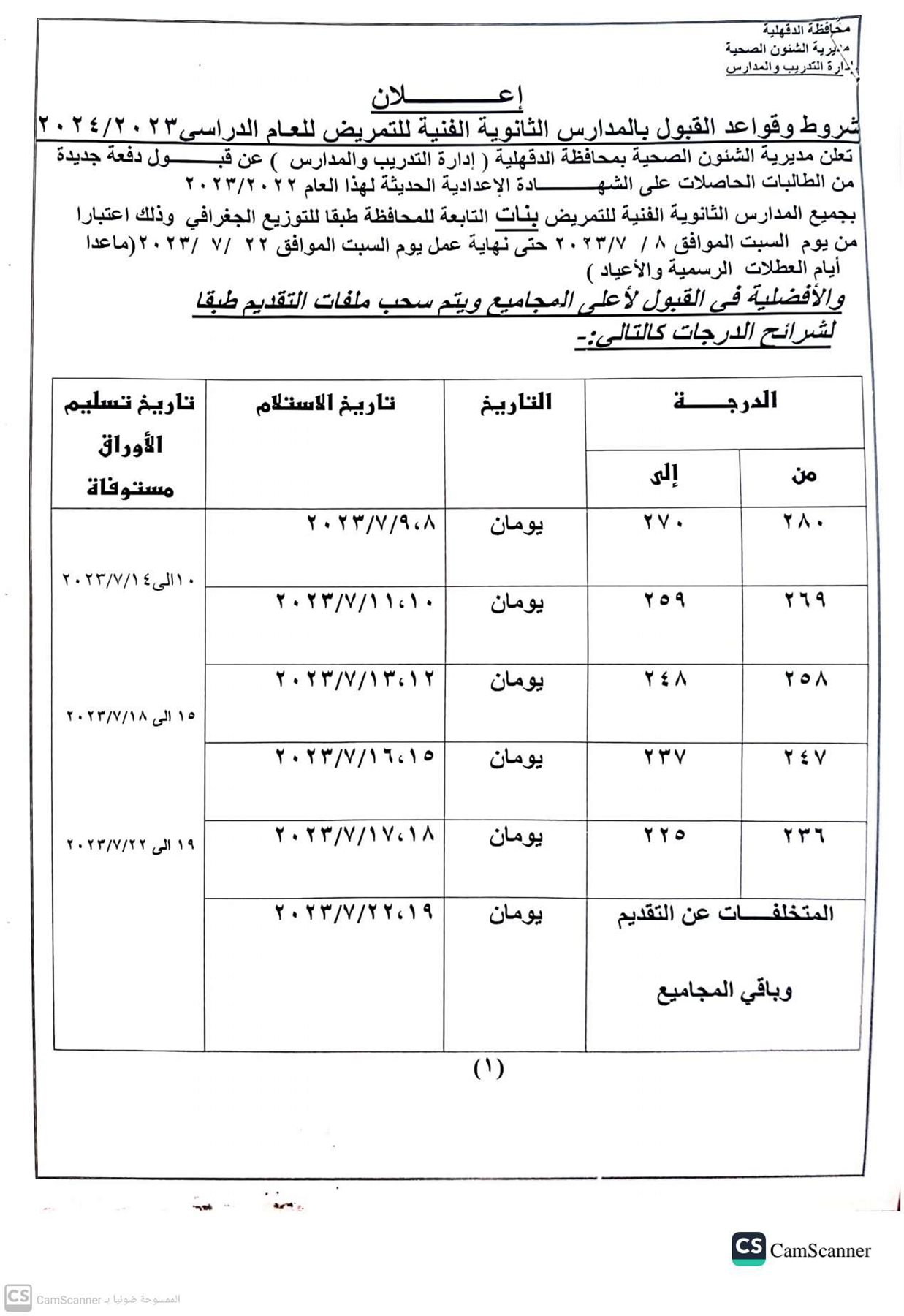 حيث تعلن مديرية الصحة بالدقهلية عن قبول دفعة جديدة من الطالبات الحاصلات على الشهادة الإعدادية لهذا العام 2022/2023، للالتحاق بالمدارس الثانوية للتمريض بمراكز ومدن وقرى المحافظة.