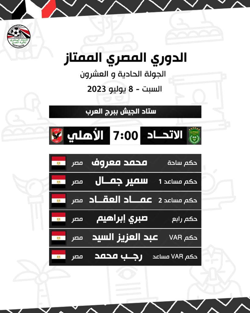 الدوري المصري، محمد معروف حكما للأهلي والإتحاد والصباحي للزمالك وفيوتشر