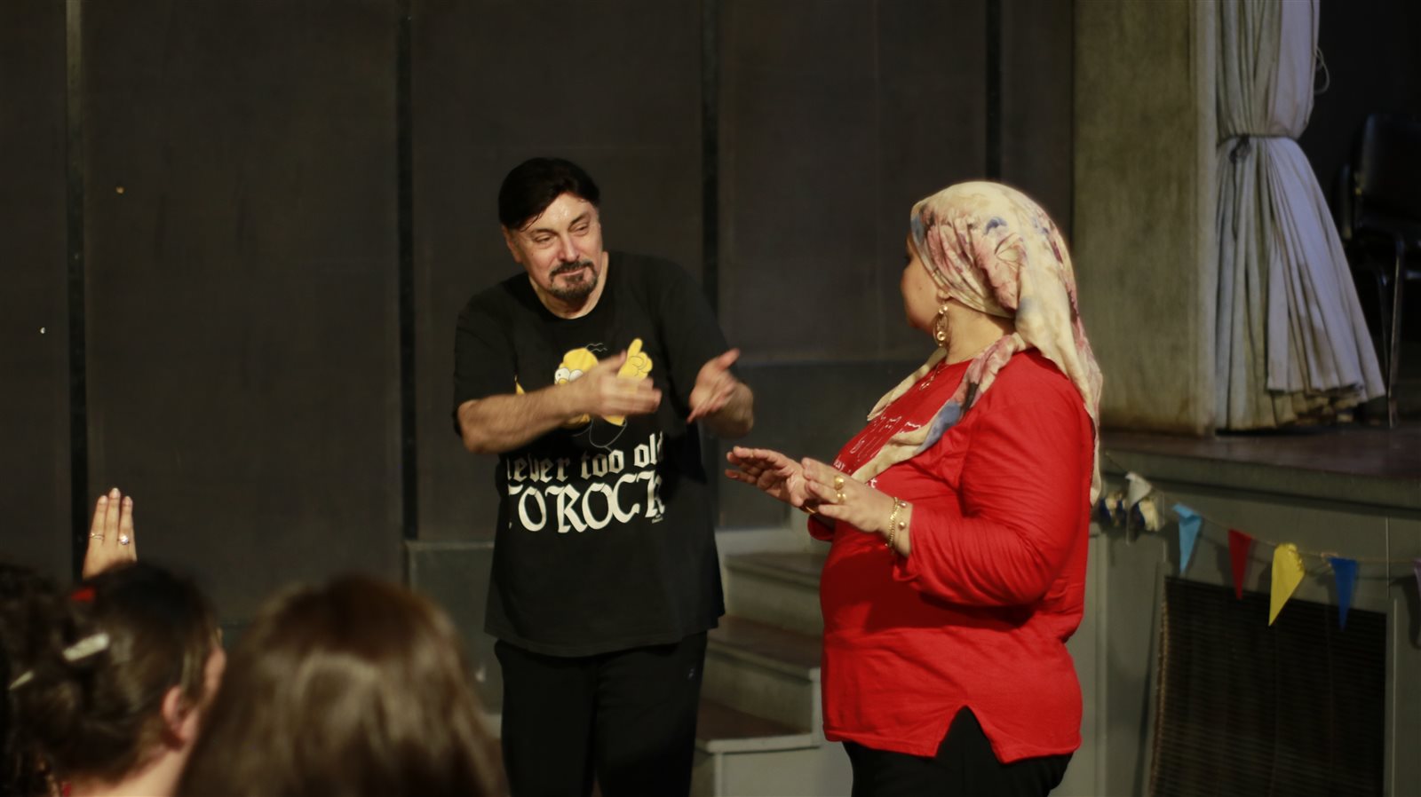 و انطلقت الورشة اليوم السبت في مسرح مركز الهناجر للفنون وشهدت إقبالا كبيرا من المشاركين في الورشة، والذين وصل عددهم لحوالي 60 مشاركا من أعمار مختلفة.