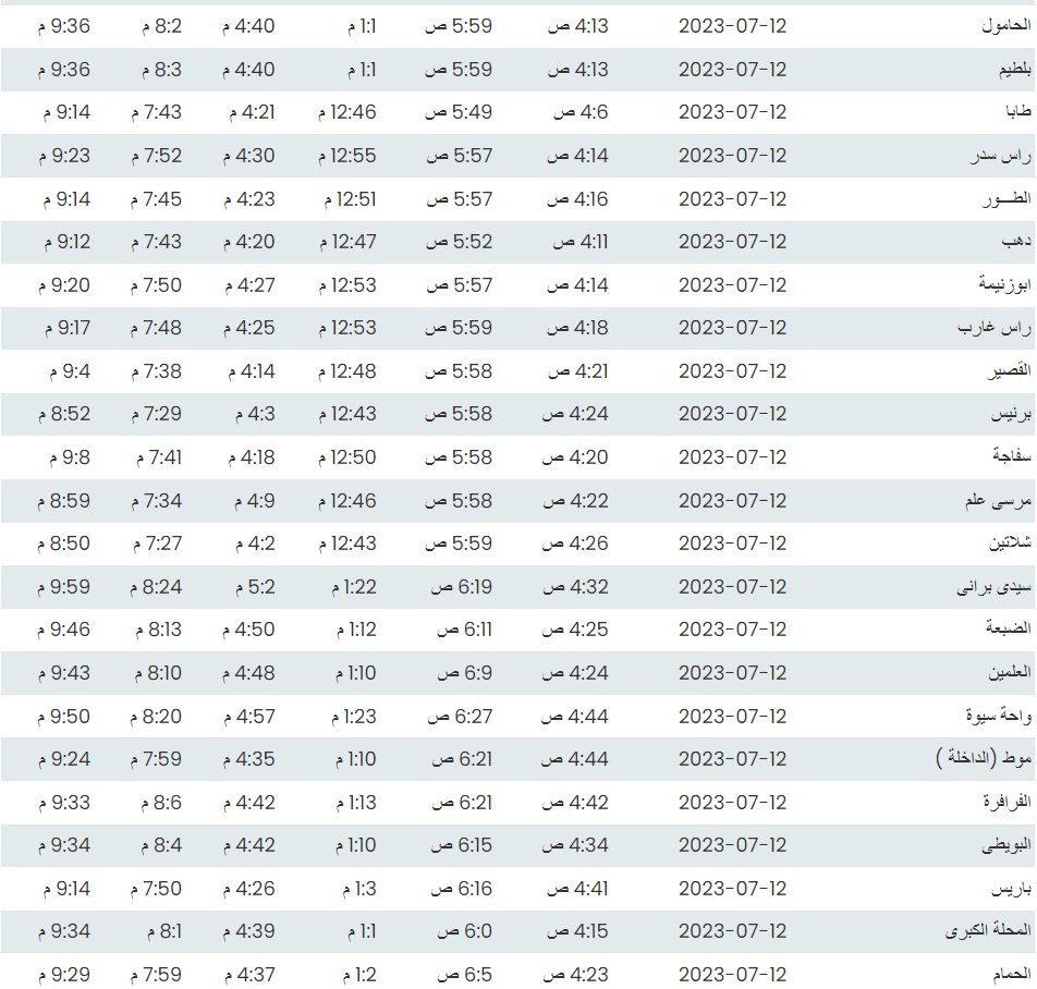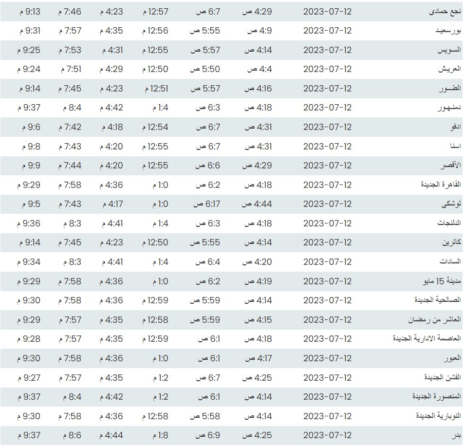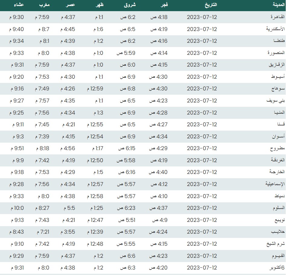 مواقيت الصلاة اليوم بتوقيت القاهرة