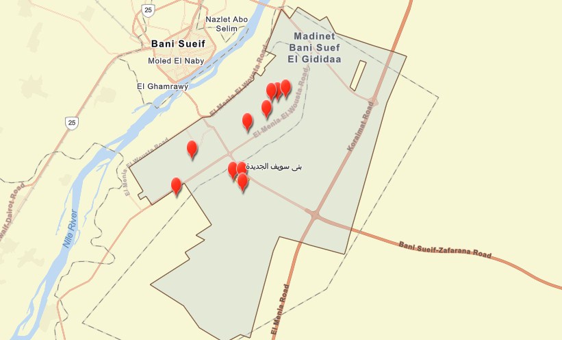 موقع ومساحات أراضي الإسكان المقترحة ببني سويف الجديدة