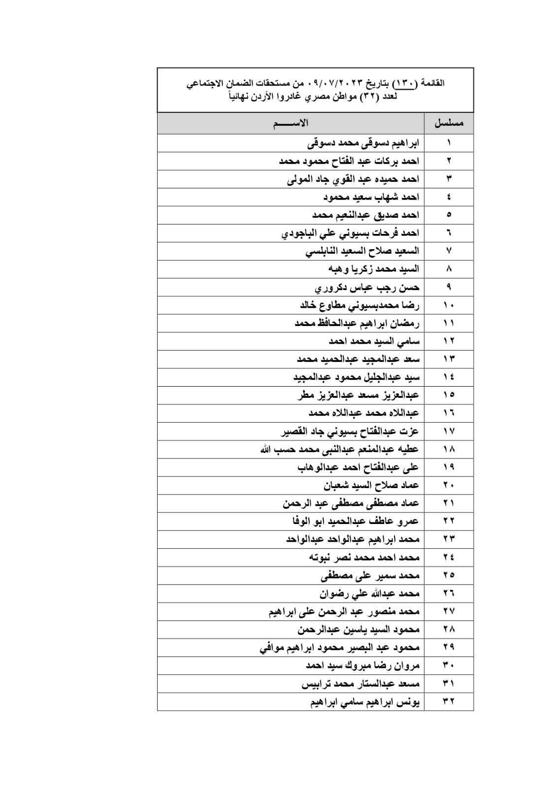 تحويل القائمة الـ 130 من مستحقات الضمان الاجتماعي لـ 32 عاملًا مصريًا