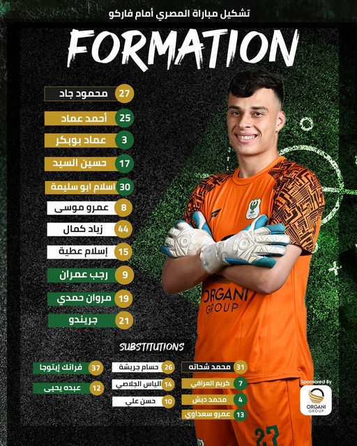 خط الدفاع: أحمد عماد، عماد بوبكر، حسين السيد، إسلام أبو سليمة