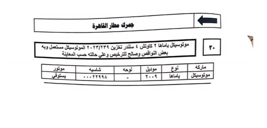 تعقد في الثانية عشرة ظهرًا يوم الثلاثاء الموافق 11 يوليو 2023 بقاعة نادي الجيزة الرياضي بشارع البحر الأعظم أسفل كوبرى عباس بالجيزة جلسة المزاد العلني المقررة لبيع 13 لوط سيارات ودراجات نارية واردة من الخارج ومخزنة بساحة جمارك السيارات بمطار القاهرة الدولي.