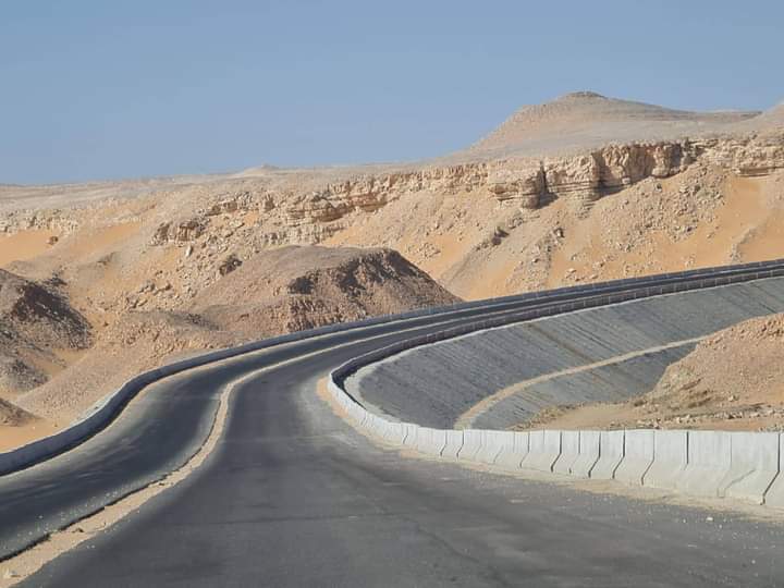 إغلاق طريق تنيدة منفلوط بالوادي الجديد بسبب أعمال الإنشاءات (صور)