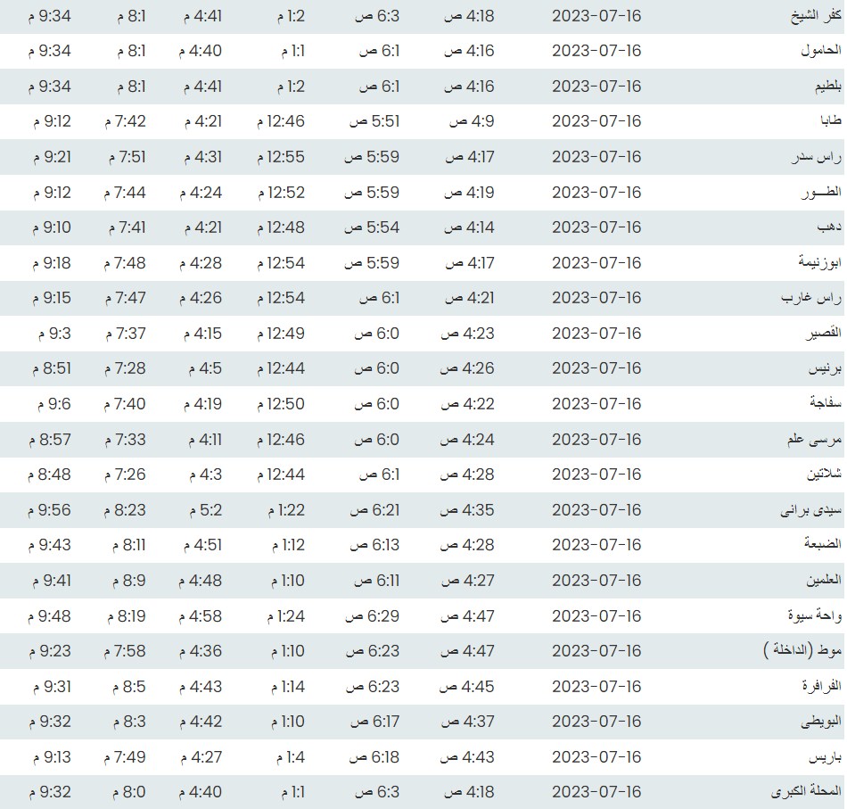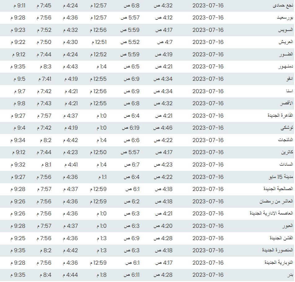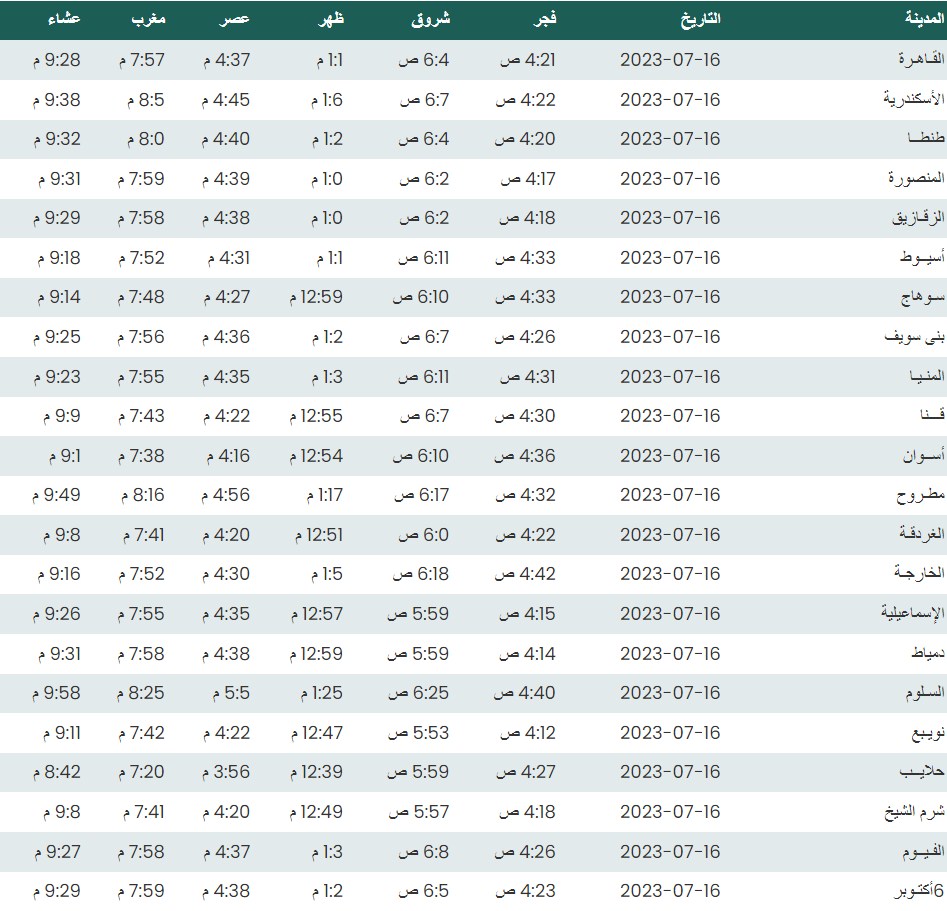 مواقيت الصلاة اليوم بتوقيت القاهرة