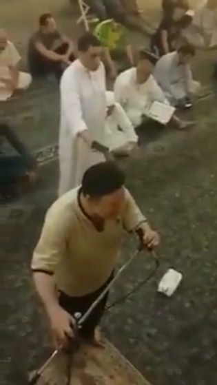 وظهر الفنان إيمان في المقطع المتداول وهو يؤذن لصلاة الفجر، مرتديًا "تريننج رياضي"، ولم تكن تظهر عليه علامات المرض بعد، لكنه كان مستندًا على ماسورة خاصة بالميكروفون.