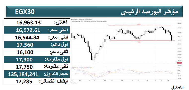 ارتفع مؤشر "إيجي إكس 30" بنسبة 0.15 % عند مستوى 16989.17 نقطة.