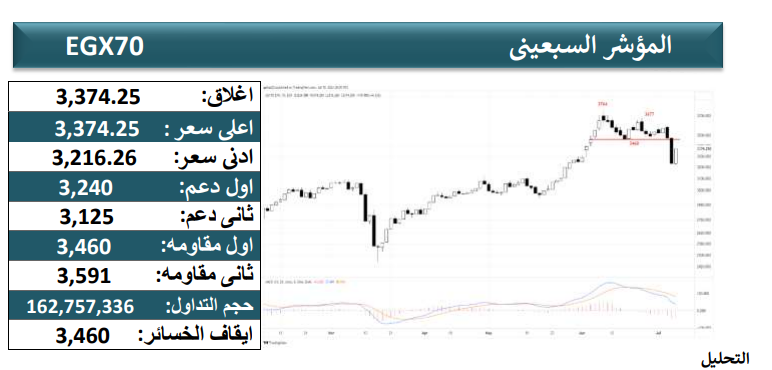 ارتفع مؤشر الشركات الصغيرة والمتوسطة "إيجي إكس 70 متساوي الأوزان" بنسبة 0.81 % عند مستوى 3401.43 نقطة.