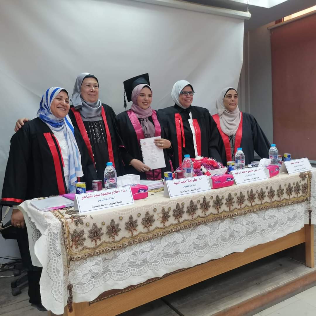 وتشكلت لجنة الإشراف والمناقشة الدكتورة كريمة احمد السيد أستاذ إدارة التمريض والدكتورة أحلام محمود سيد الشاعر أستاذ إدارة التمريض بجامعة المنصورة كممتحن خارجي والدكتورة لبنى خميس محمد ابراهيم أستاذ إدارة التمريض بجامعة طنطا والدكتورة مها عيد شقير أستاذ مساعد إدارة التمريض بجامعة طنطا كممتحن داخلي.