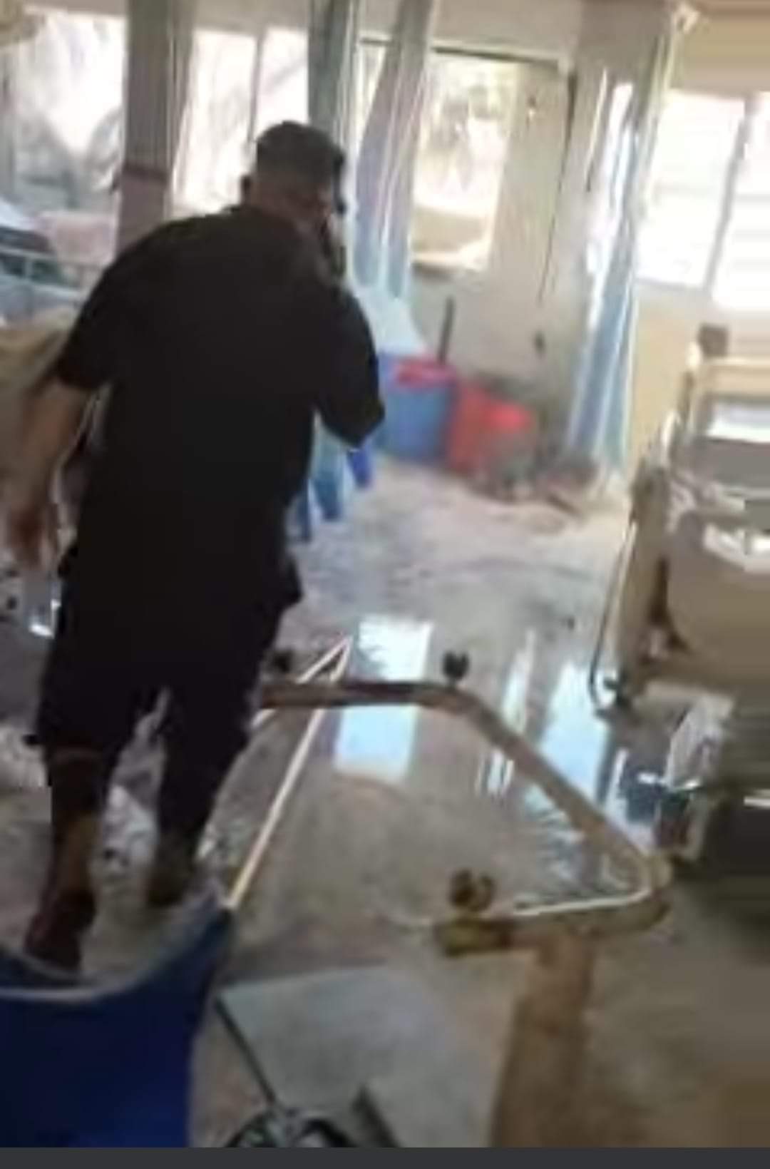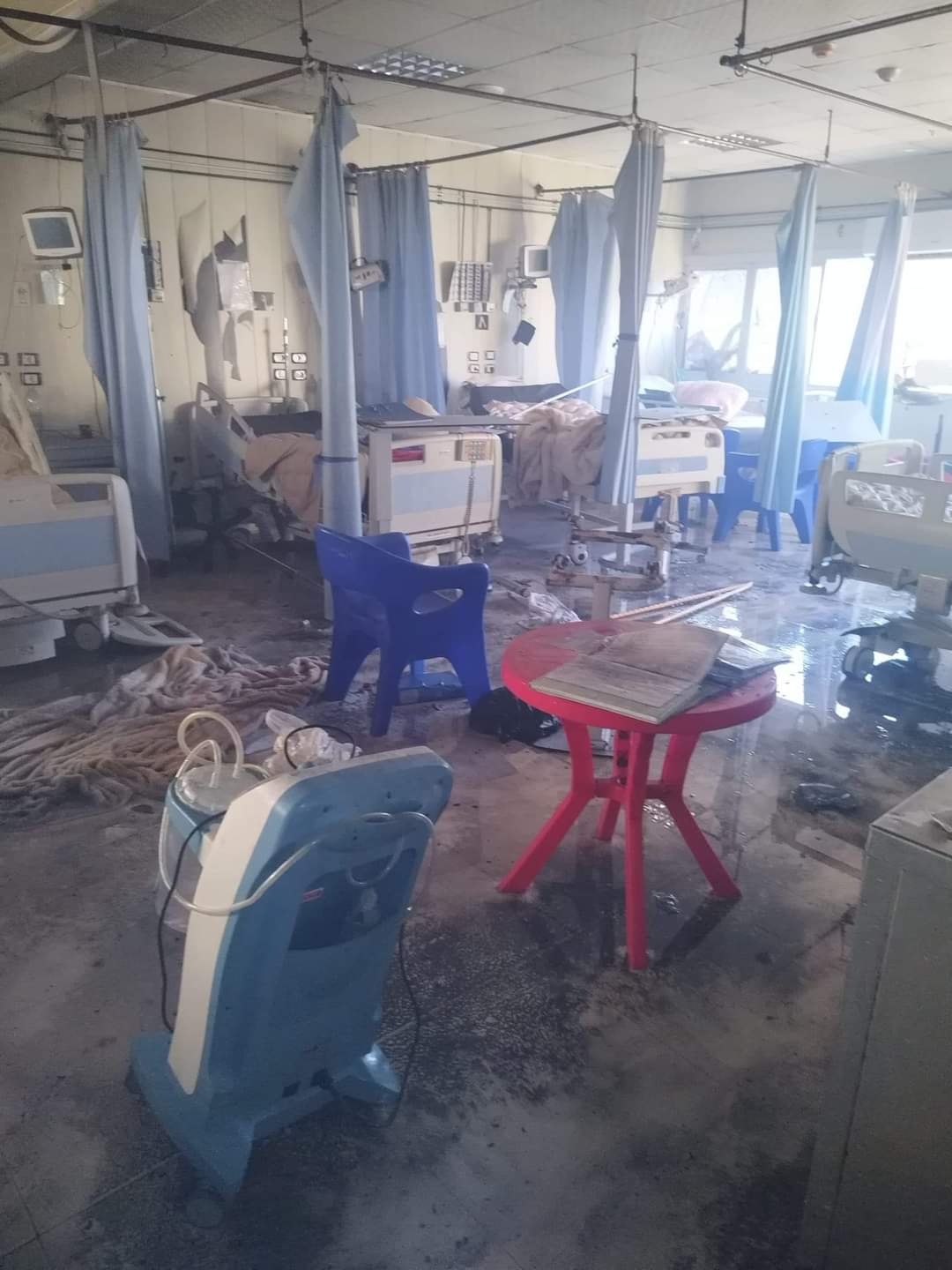 والتهمت النيران كامل محتويات غرفة العناية المركزة بعد تعرضه لحريق.