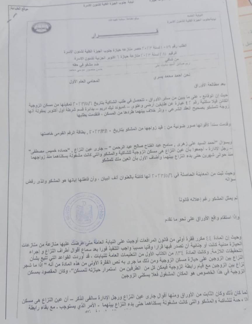 نص قرار تمكين زوجة حسن شاكوش من فيلا أكتوبر الفاخرة