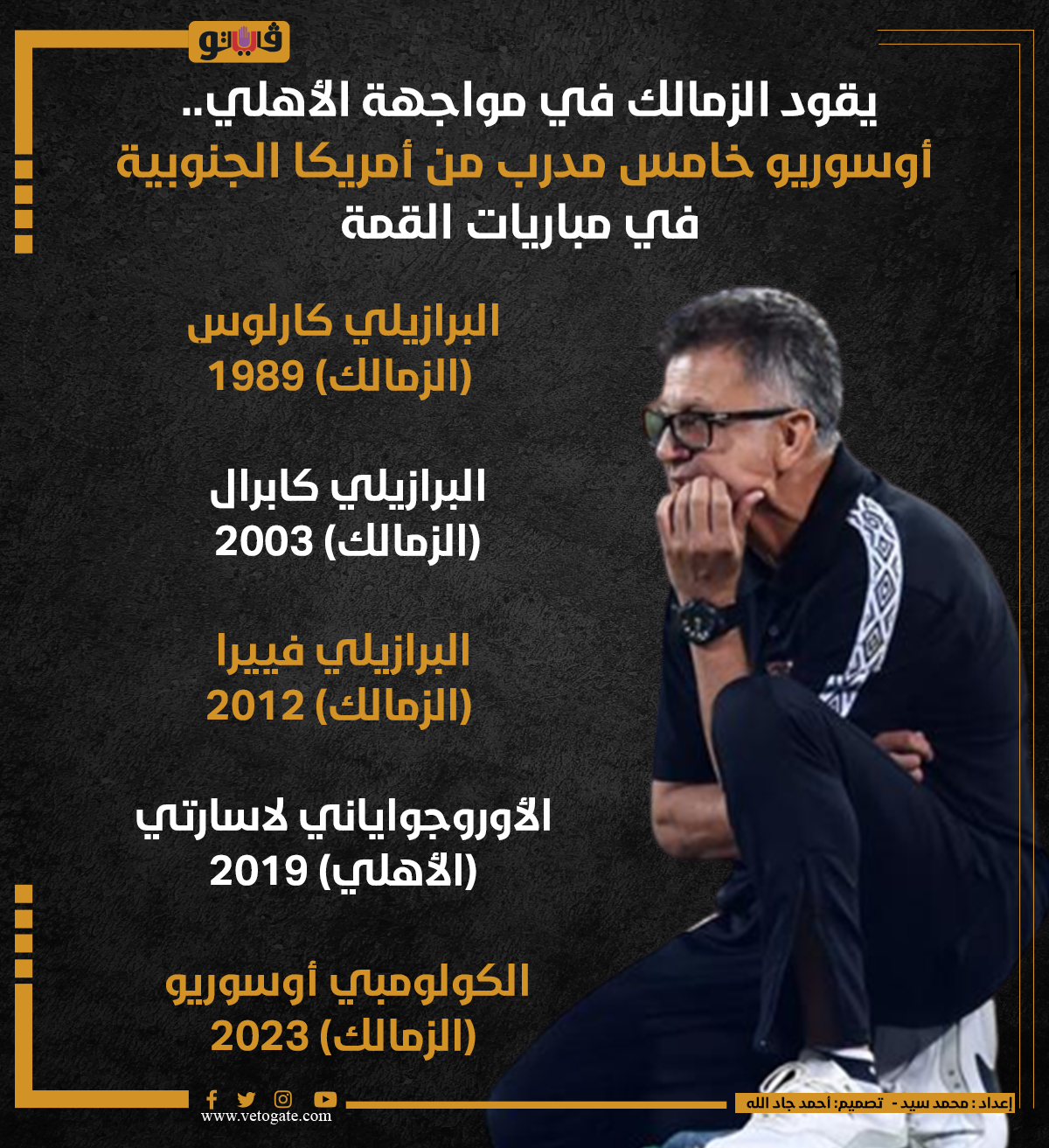 يقود الزمالك في مواجهة الأهلي.. أوسوريو خامس مدرب من أمريكا الجنوبية في مباريات القمة (إنفوجراف) الأربعاء 12/يوليو/2023 - 01:22 م 7/12/2023 1:22:25 PM أوسوريو، فيتو محمد سيد شارك طباعة 18 حجم الخط شارك طباعة أوسوريو خوان كارلوس أوسوريو الزمالك الأهلي القمة كارلوس كابرال لاسارتي فييرا