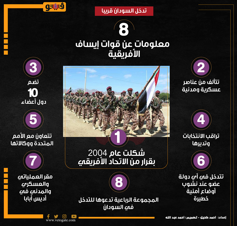 تدخل السودان قريبا، 8 معلومات عن قوات إيساف الأفريقية (إنفوجراف) الأربعاء 12/يوليو/2023 - 07:28 م 7/12/2023 7:28:26 PM قوات إيساف، فيتو أحمد كحيل شارك طباعة 18 حجم الخط شارك طباعة إيجاد إيساف قوات إيساف السودان اثيوبيا