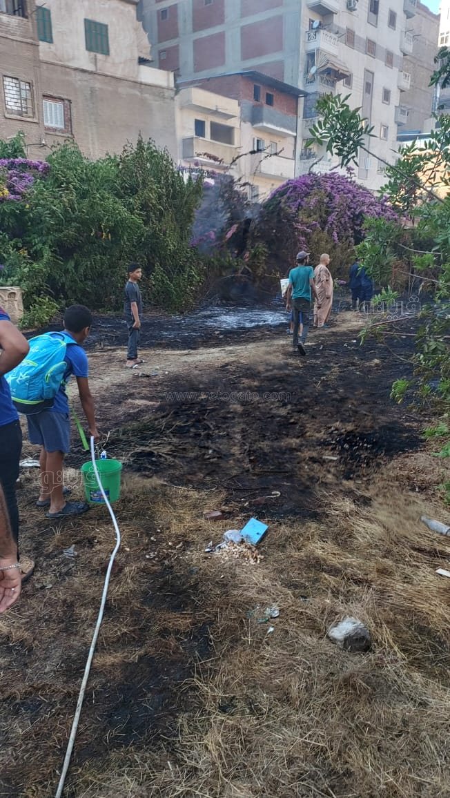 وبالمعاينة الأولية تبين أن سبب الحريق جسم مشتعل القى علي برجولة خشبية تسبب في اشتعال النار وامتد لباقي لجزء كبير من الحديقة تمثلت في نصفها.