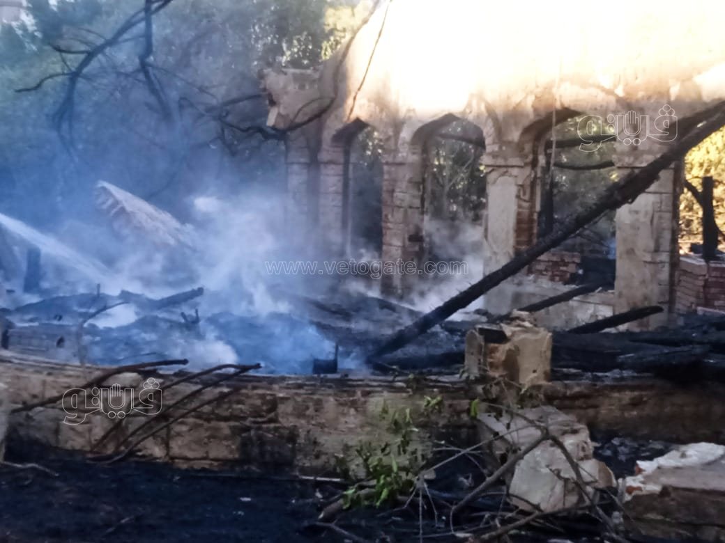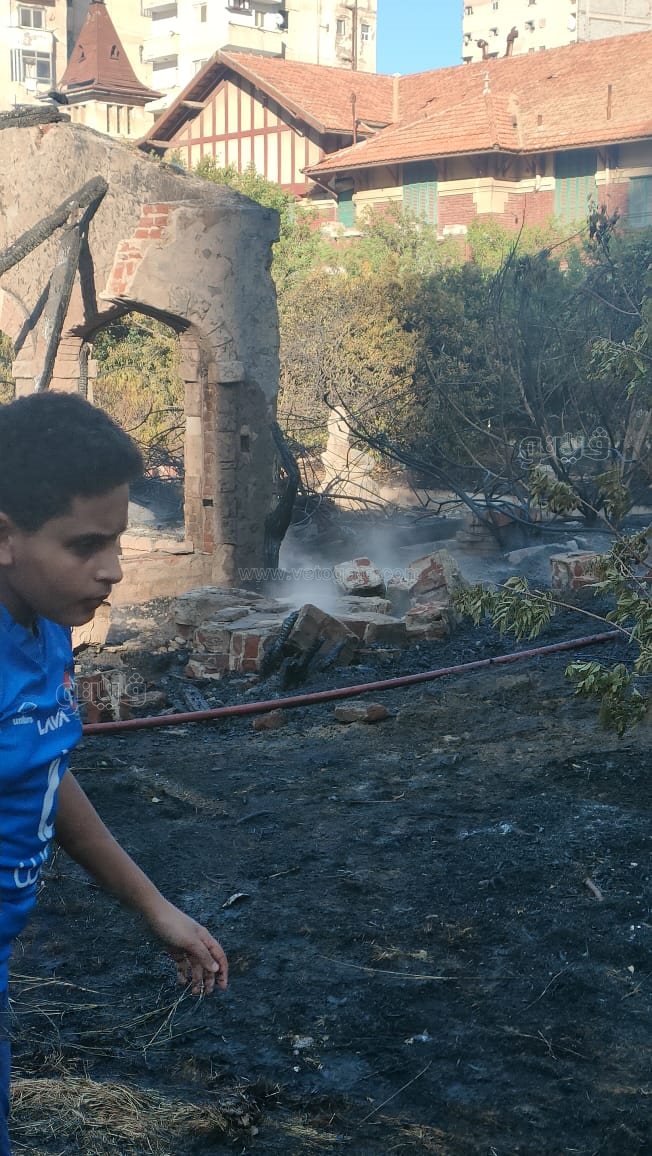 وتبين نشوب حريق بحديقة الفيلا المقامه علي مساحه كبيرة وأتت علي جزء كبير من الحديقة وجري السيطرة على الحريق بواسطه سيارات الاطفاء قبل امتداده الي باقي الحديقة والفيلا، ولا يوجد أحد يقطن الفيلا سوي عدد من الحراس والمبني الرئيسي مغلق ويوجد عده أبنية مهدمه بالحديقة.