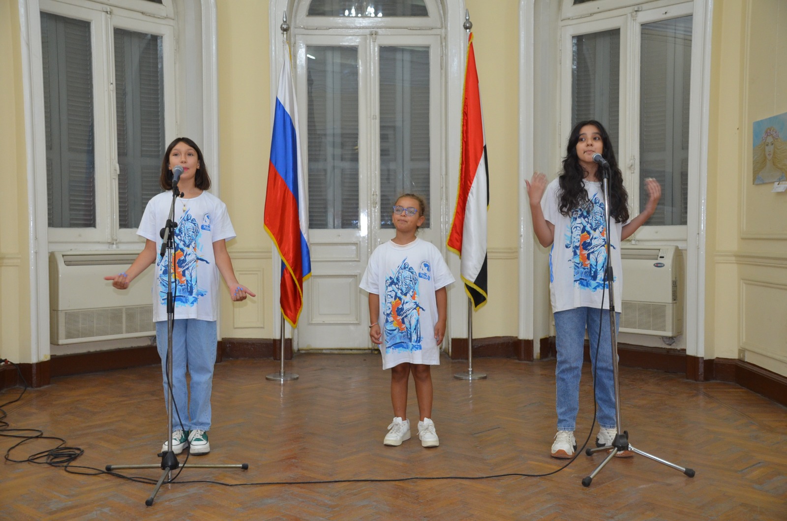 وضمت الاحتفالية عرضا فنيا لأطفال الجالية الروسية في مصر، ضم بعض الفقرات الغنائية والقاء الشعر.