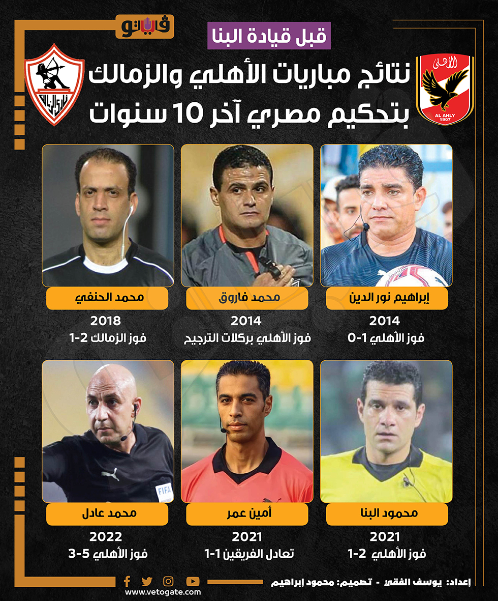 قبل قيادة البنا، نتائج مباريات الأهلي والزمالك بتحكيم مصري آخر 10 سنوات (إنفوجراف) الخميس 13/يوليو/2023 - 03:26 م 7/13/2023 3:26:31 PM محمود البنا، فيتو يوسف الفقي شارك طباعة 18 حجم الخط شارك طباعة الأهلى والزمالك مباراة الأهلي والزمالك الدوري المصري محمود البنا موعد مباراه الزمالك والاهلي