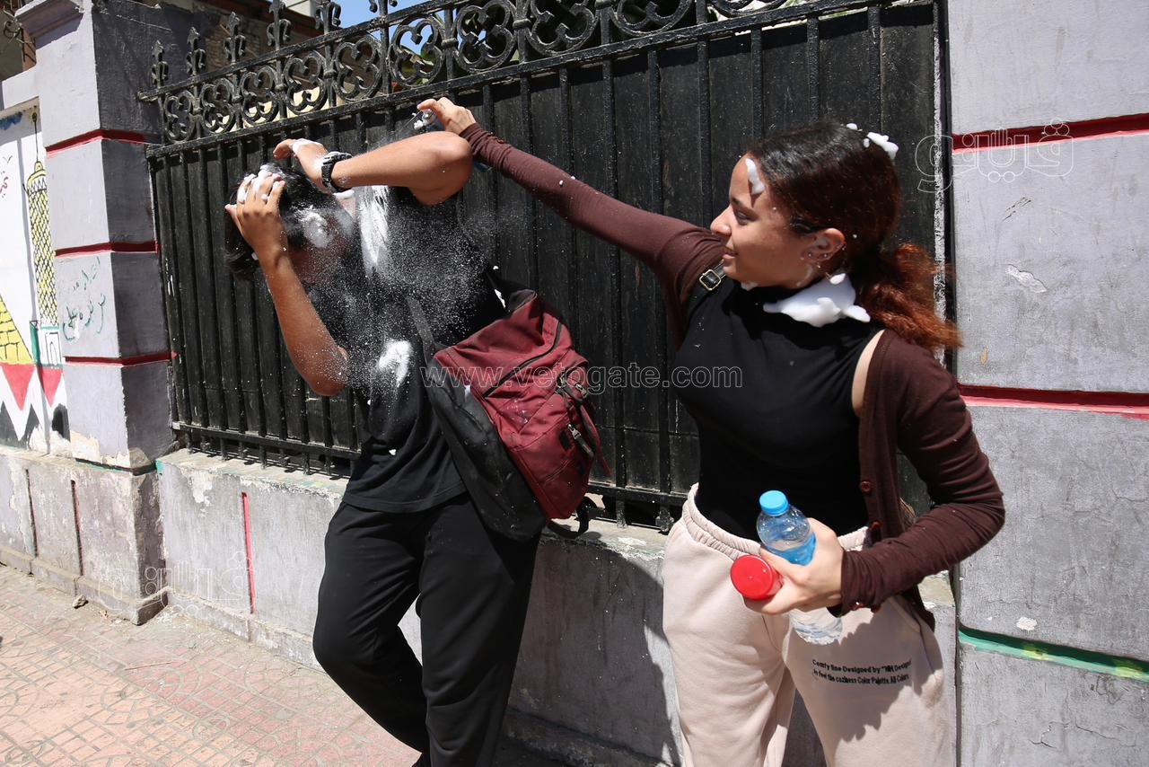 بالثلج والبلالين، احتفال طلاب الثانوية العامة بآخر أيام الامتحانات بالقاهرة (صور)