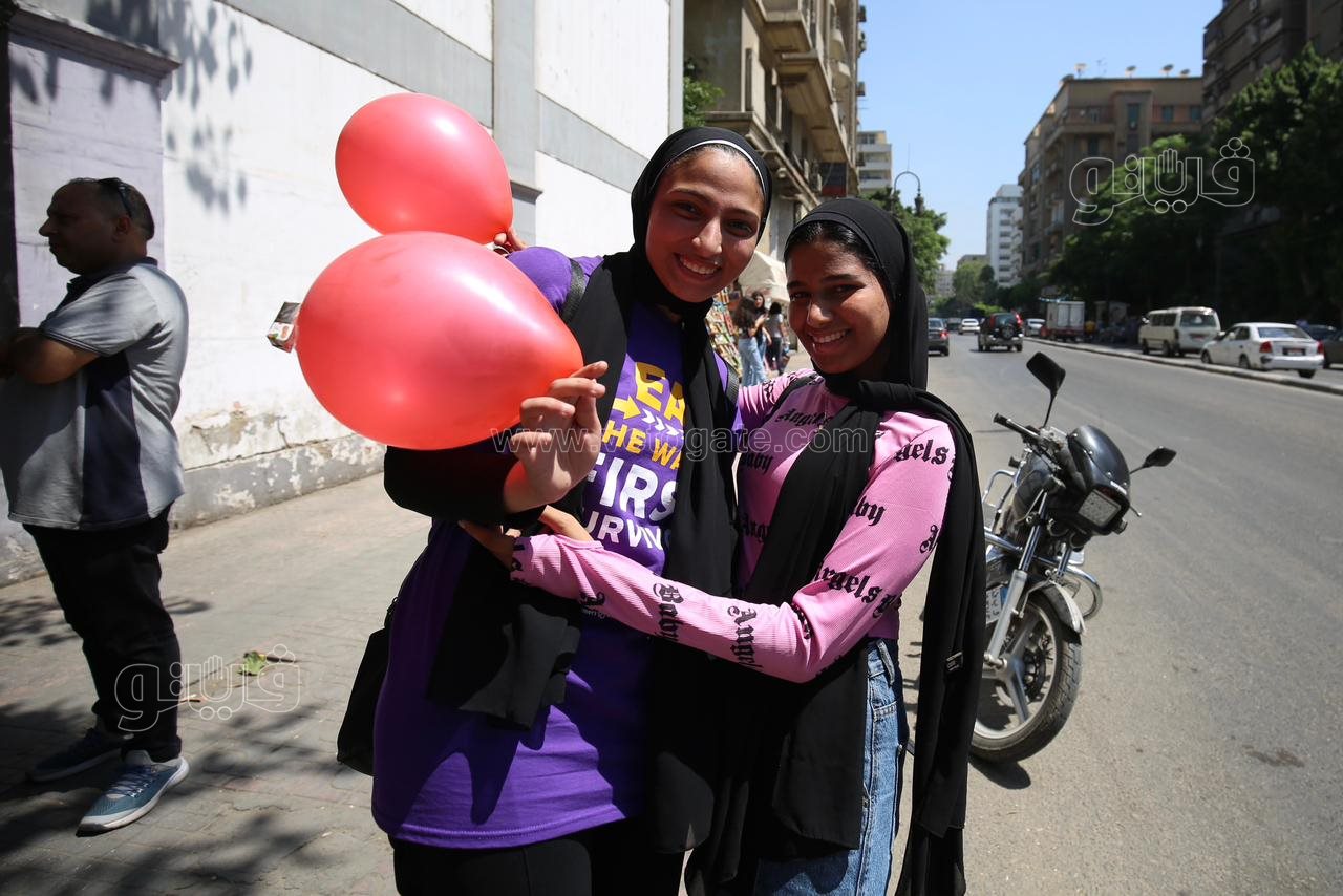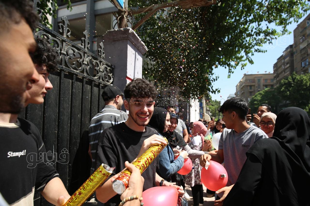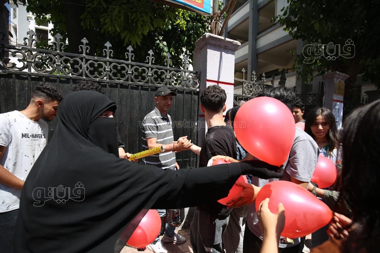 الثانوية العامة، احتفل طلاب الثانوية العامة بآخر أيام الامتحانات من أمام مدرسة مدرسة قصر الدوبارة بمحافظة القاهرة باللعب بالبلالين وثلج الأفراح.
