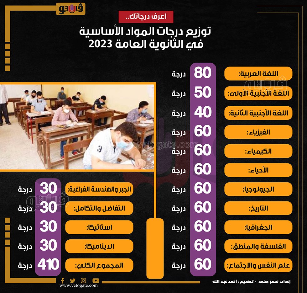 وفيما يلي توزيع درجات مواد الثانوية العامة 2023: