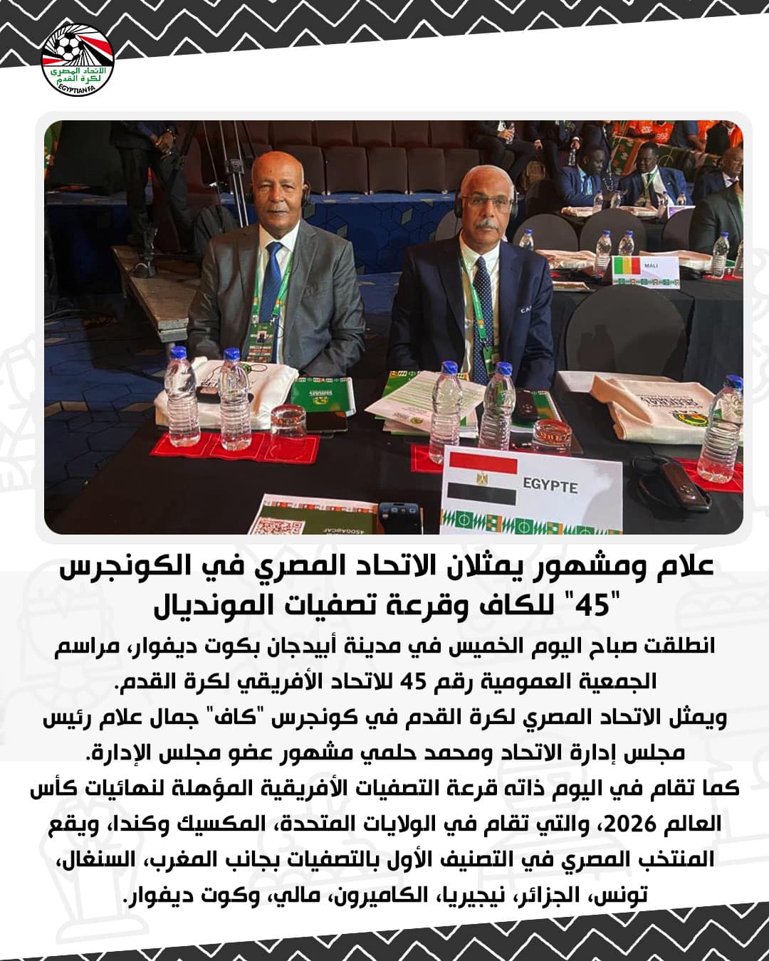 علام ومشهور يمثلان الاتحاد المصري في الكونجرس الـ 45 للكاف وقرعة تصفيات المونديال
