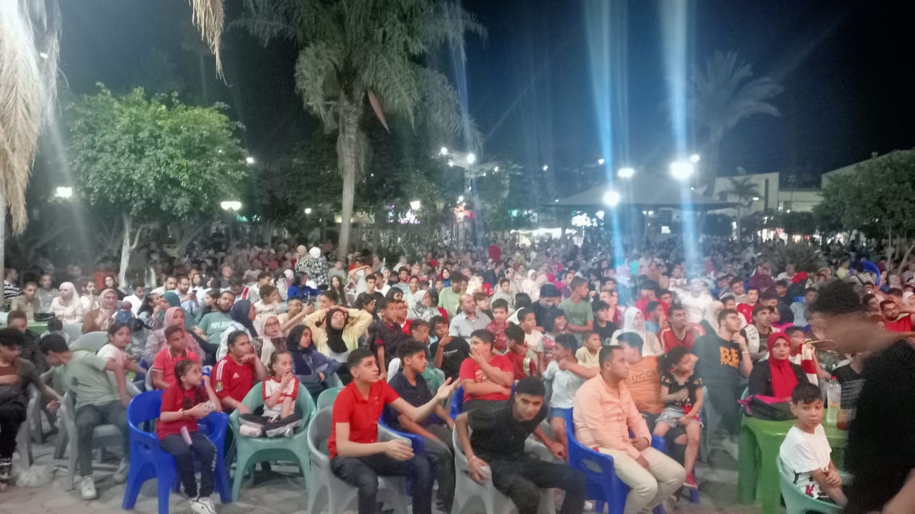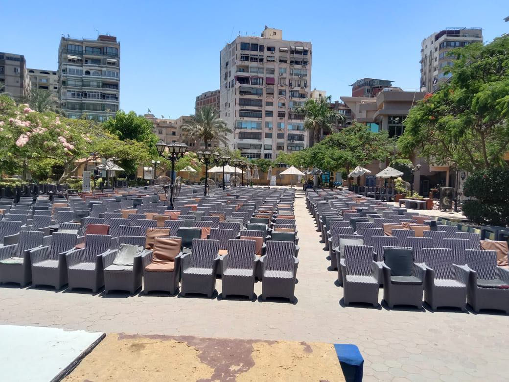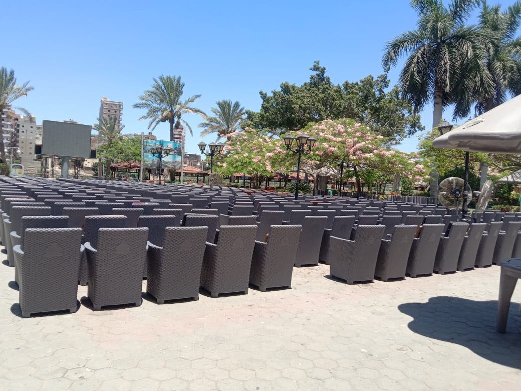 حيث تم التجهيز باصطفاف المقاعد وتجهيزها أمام شاشات العرض داخل القاعات والساحات وعلي تراسات النادي.