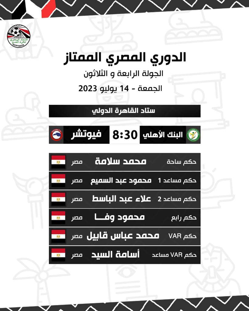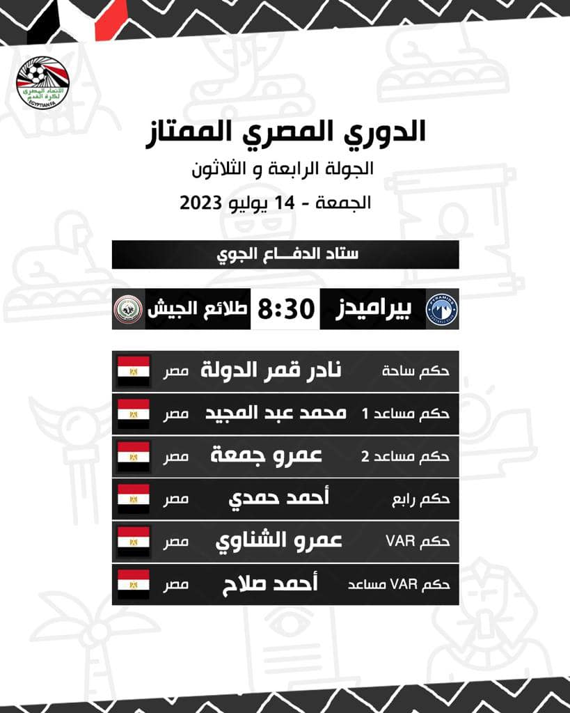 الدوري المصري، أعلنت لجنة الحكام الرئيسية باتحاد الكرة، حكام مباريات اليوم الجمعة في صراع الهبوط بالدوري المصري.