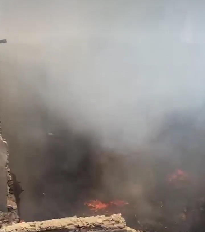 ويقوم رجال الحماية بإجراء عملية التبريد لحريق منزل مهجور لمنع تجدد النيران مرة أخرى.