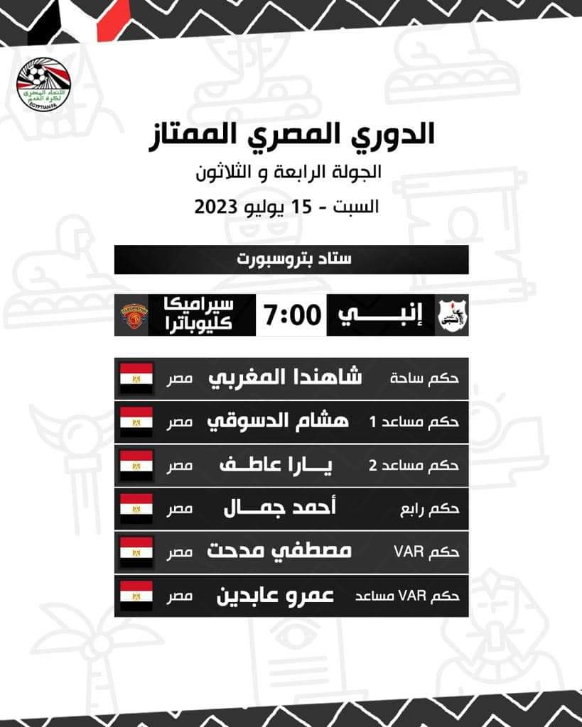 طاقم تحكيم إنبي وسيراميكا كيلوباترا
