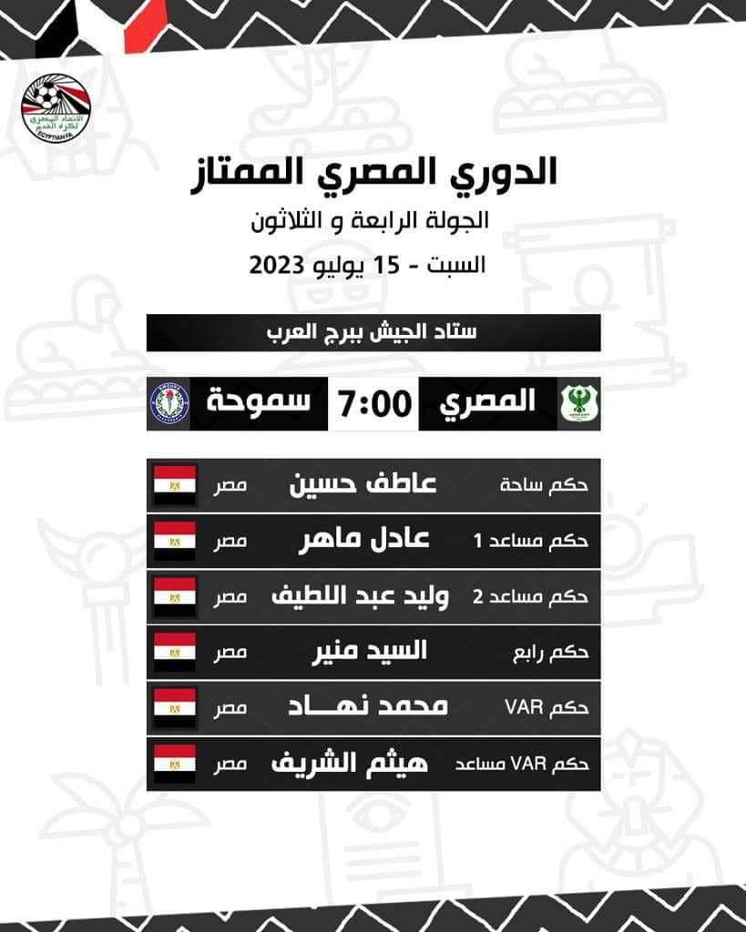 الدوري المصري، أعلنت لجنة الحكام الرئيسية باتحاد الكرة، حكام مباريات اليوم السبت وظهر العنصر النسائي بقوة في مبارايات اليوم.