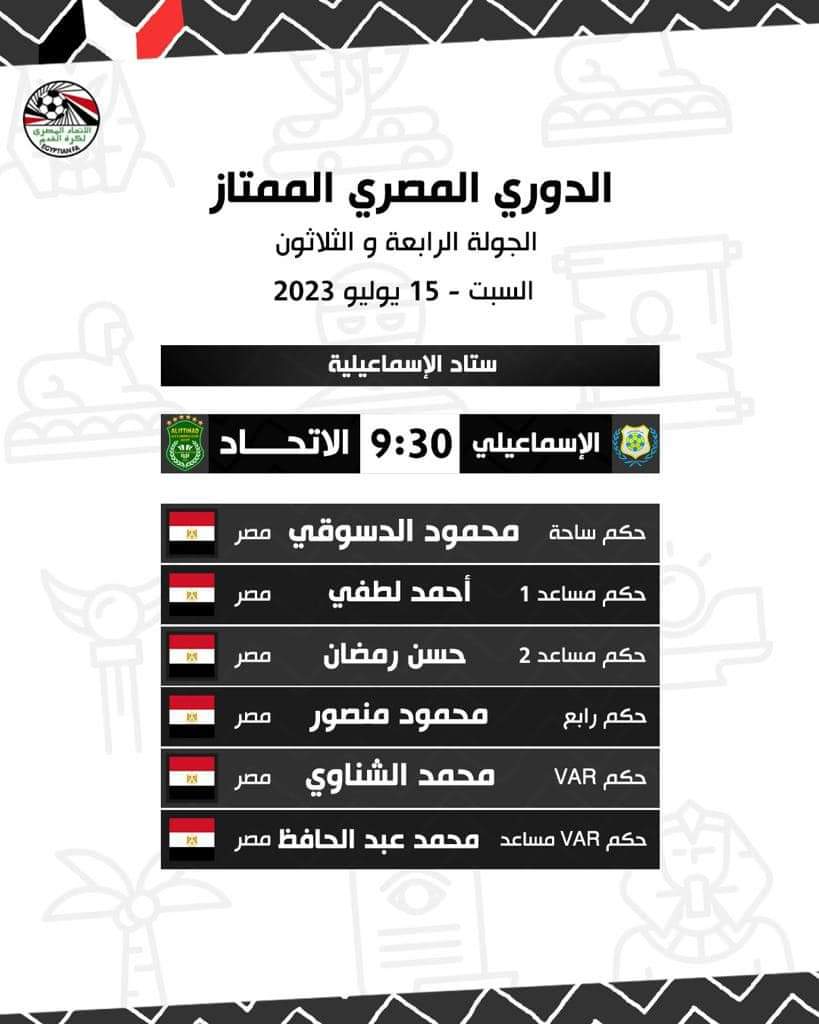طاقم تحكيم الإسماعيلي والاتحاد السكندري