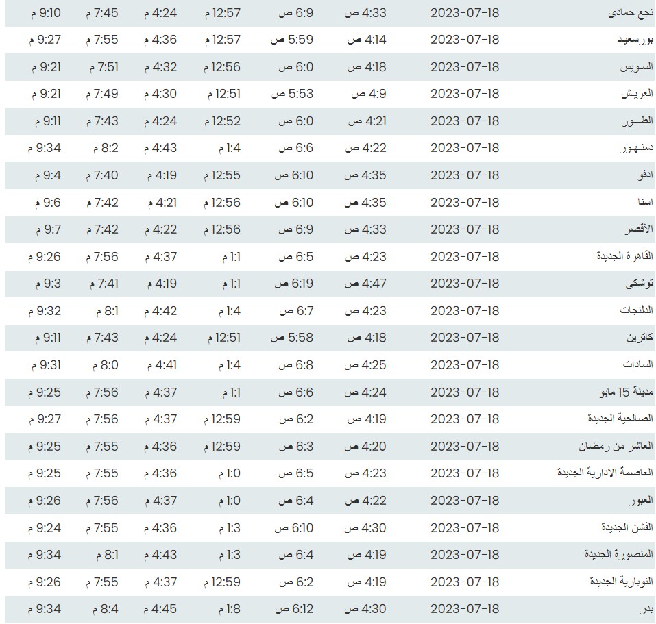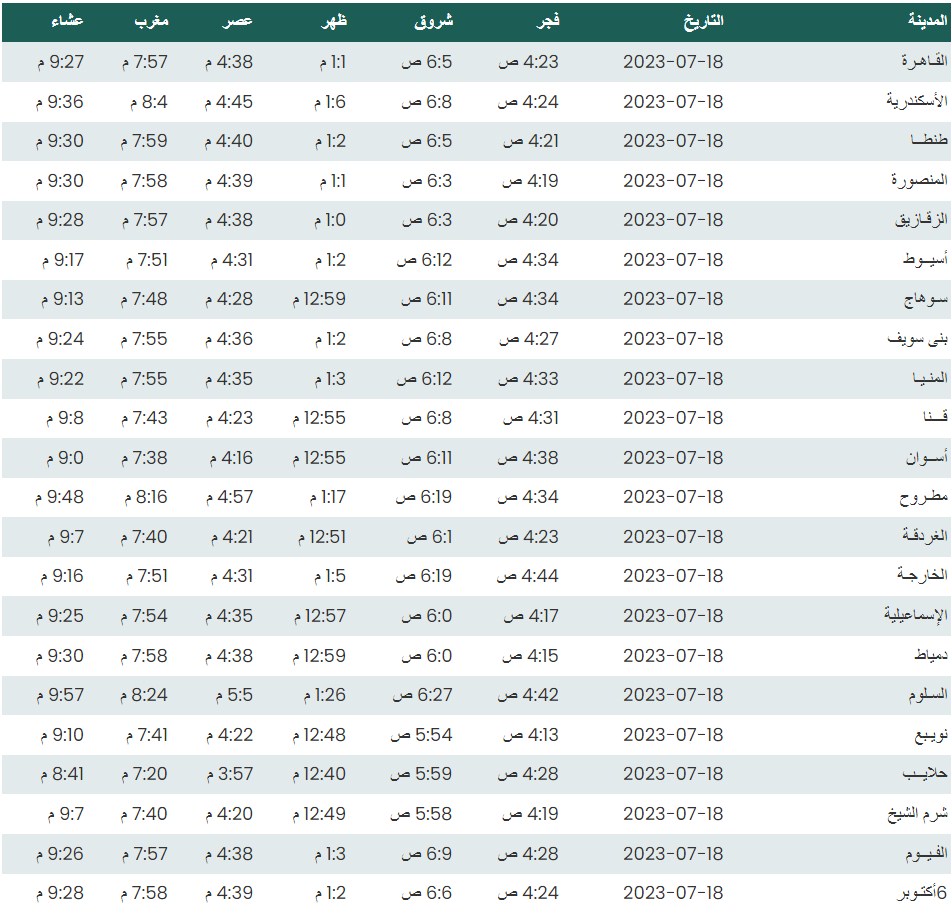 مواقيت الصلاة اليوم بتوقيت القاهرة