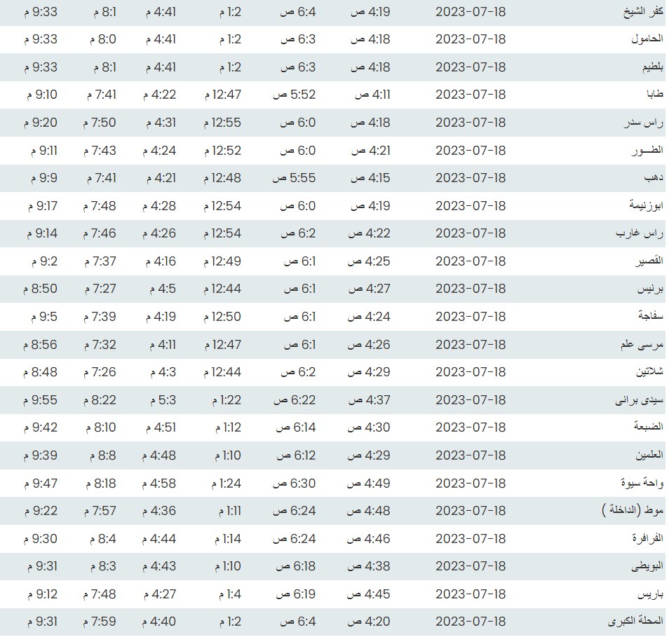 مواقيت الصلاة اليوم بتوقيت أسيوط