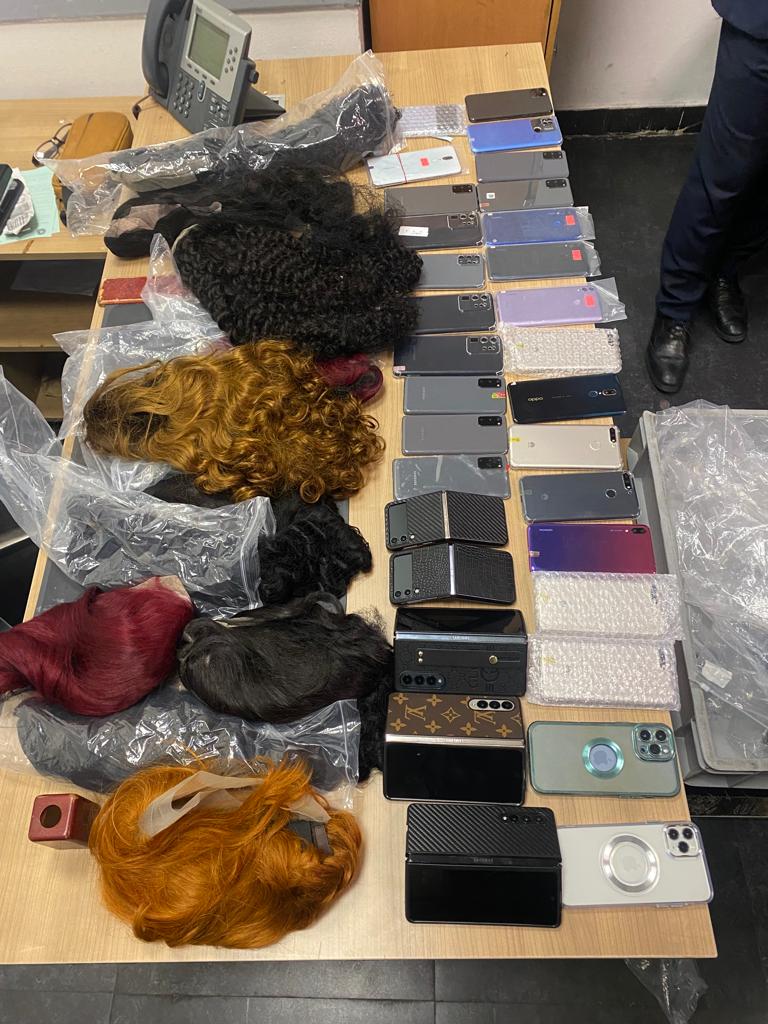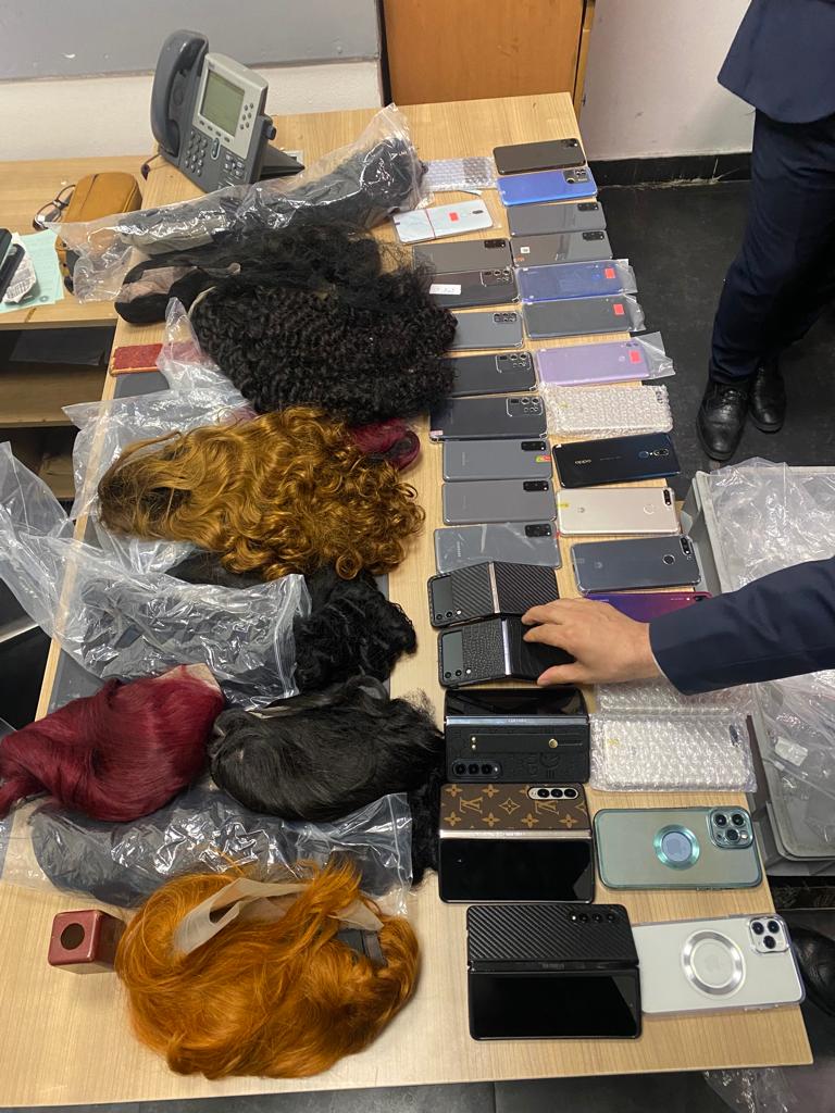 ضبط راكب أجنبي حاول تهريب 31 هاتف محمول وشعر مستعار بمطار القاهرة (صور)