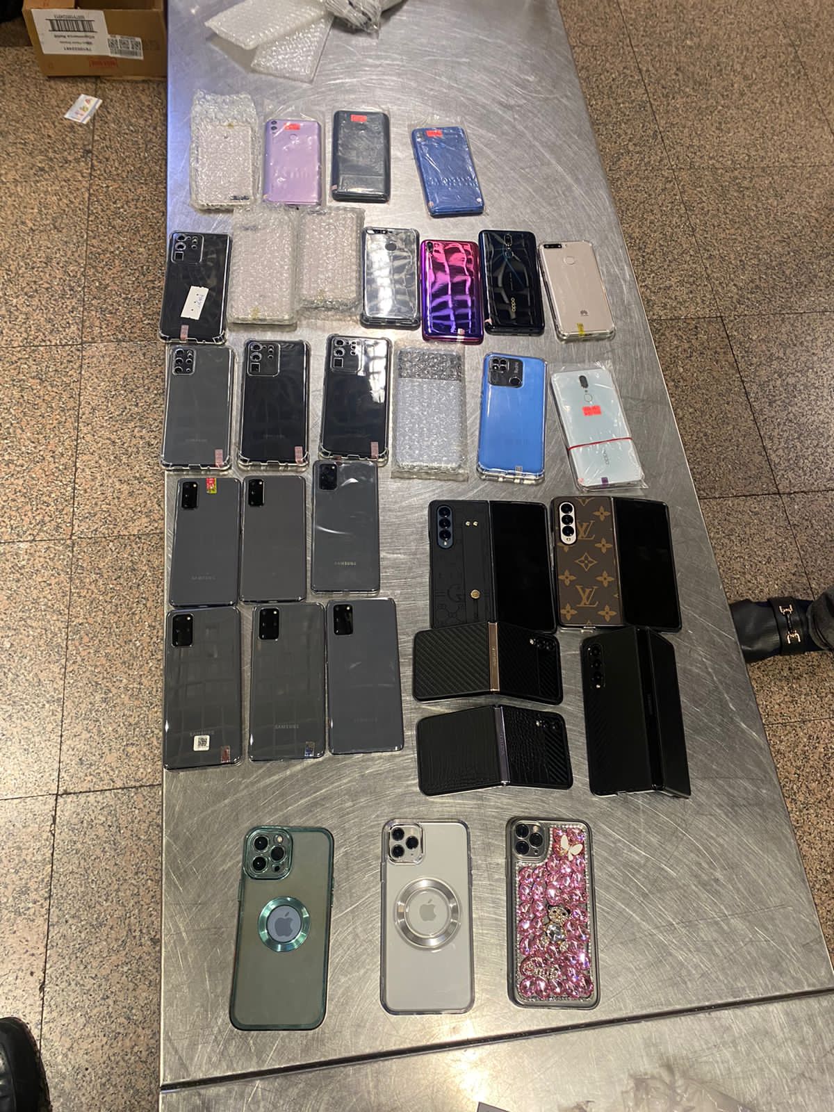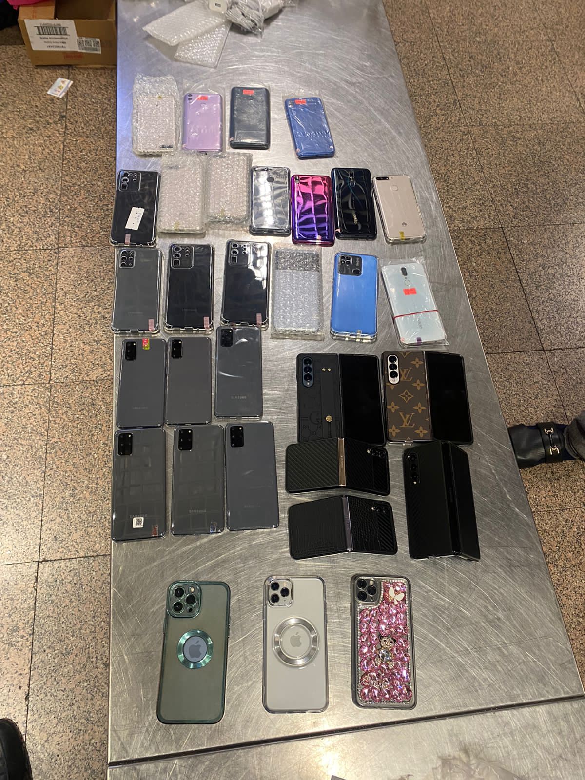 وقام تامر قاسم مدير الجمرك، بتكليف لجنة مكونة من حسام الشافعي ومصطفى حسن وعماد صلاح وعبد القوي عزوز مأمورا الجمرك، باستكمال التفتيش اليدوي بدقة مما أسفر عن وجود كمية أخرى من الهواتف المحمولة مخبأة بين طيات الملابس بالحقائب، بالإضافة إلى كمية من الشعر المستعار.