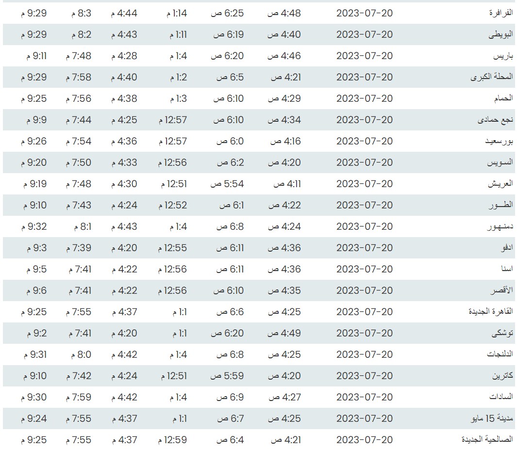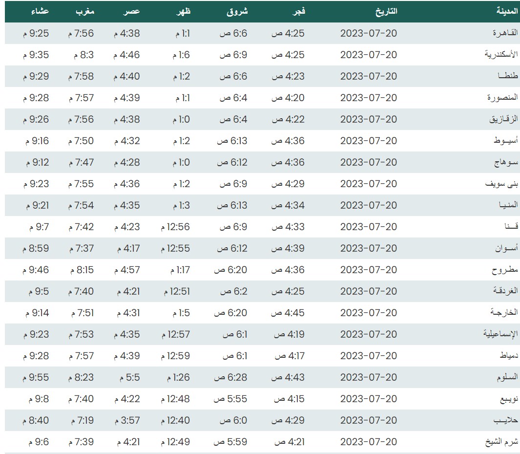 مواقيت الصلاة اليوم بتوقيت القاهرة