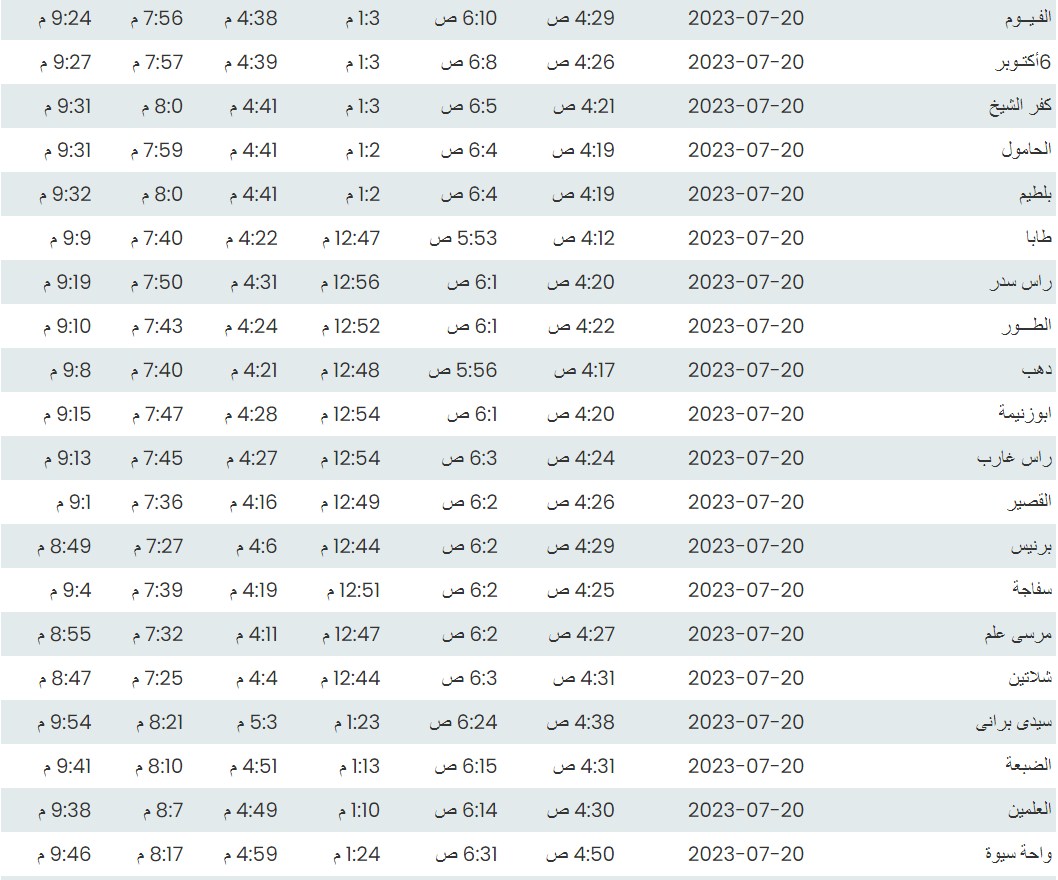 مواقيت الصلاة اليوم بتوقيت أسيوط