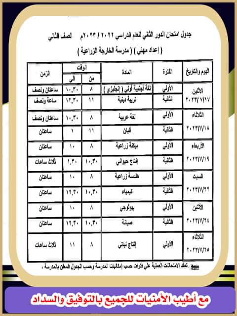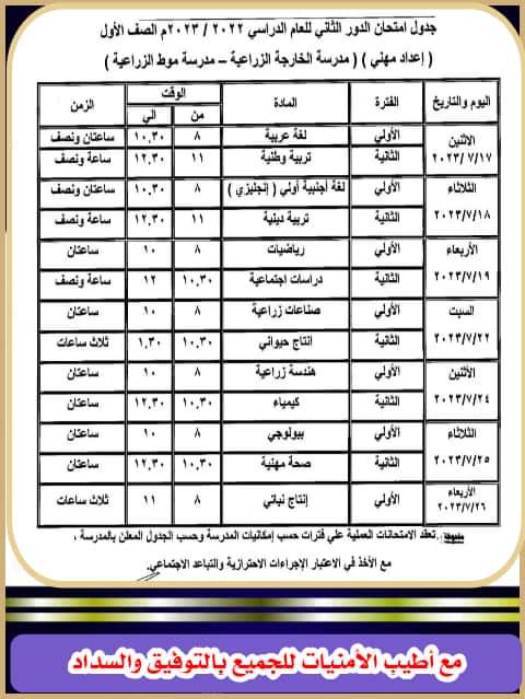 ننشر جدول امتحانات الدور الثاني لصفوف النقل بمدارس التعليم الصناعي بالوادي الجديد