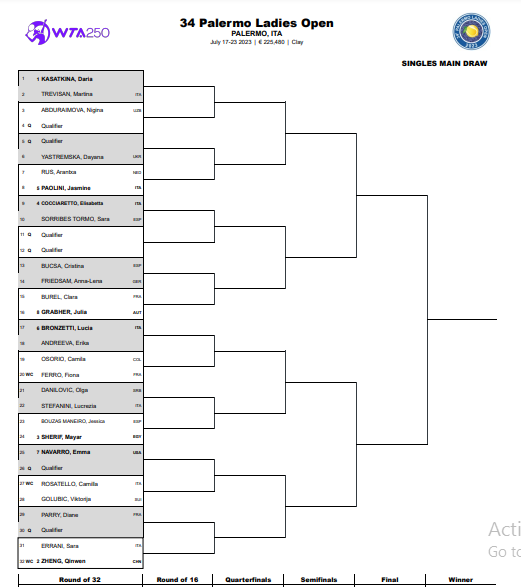 وكانت اختتمت بالأمس منافسات الدور التمهيدي من بطولة باليرمو وشهدت مواجهات قوية بين اللاعبات من أجل التأهل لدور الـ32.