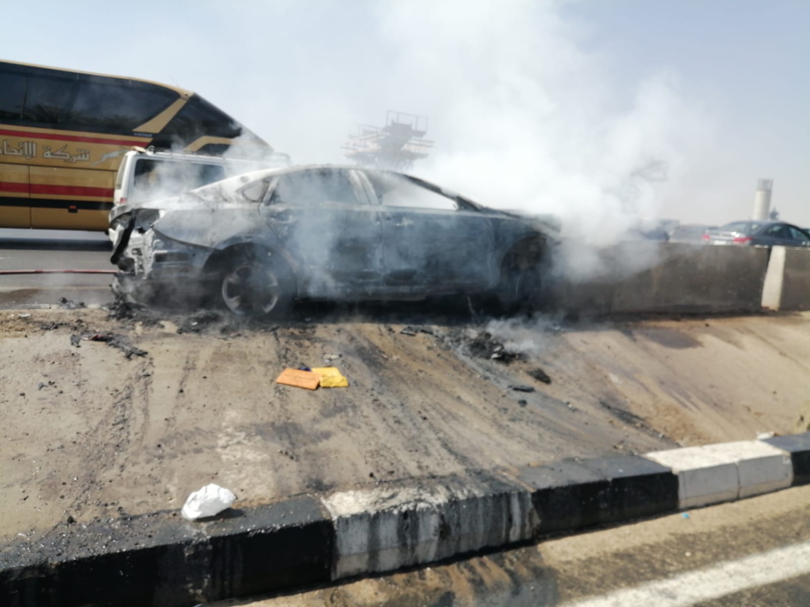 وكانت غرفة عمليات النجدة بالجيزة تلقت بلاغا بنشوب حريق أعلى محور 26 يوليو اتجاه مدينة أكتوبر، وبالانتقال والفحص تبين اشتعال سيارة ملاكي إثر اصطدامها بالحاجز الأسمنتى وتم الإخماد وتبين وجود جثة متفحمة تم نقلها لمشرحة زينهم.
