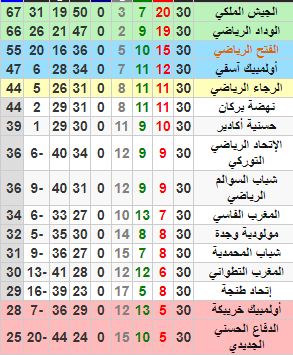 حقق الجيش الملكي لقب الدوري المغربي بعد صراع طويل بينه وبين الوداد حسم مع صافرة الحكم في الجولة الأخيرة ونال الجيش اللقب بعدما جاء في الصدارة برصيد 67 نقطة بينما حصل الوداد علي المركز الثاني برصيد 66 نقطة، واحتل الرجاء المركز الخامس برصيد 44 نقطة، وكان الوداد هو حامل لقب النسخة الماضية من بطولة الدوري ووصيف دوري أبطال أفريقيا في هذا الموسم أمام الأهلي المصري وحصل بولي سامبو لاعب الوداد علي لقب هداف البطولة برصيد 13 هدف وجاء في المركز الثاني رضا سليم لاعب الجيش الملكي برصيد 11 هدف ويعتبر اللاعب هو أحد المرشحين للإنضمام للنادي الأهلي المصري وفقا لعدة مصادر مغربية.