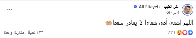 وكتب علي الطيب قائلا: "اللهم اشف أمي شفاء لا يغادر سقما".